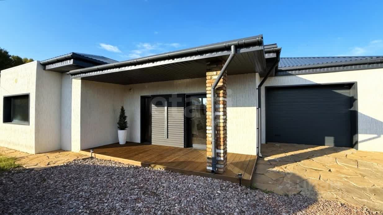 Дом с гаражом в Сосновоборске , имеется 3 комнаты и кухню гостиную с окнами в пол , что позволило добавить воздуха и света .