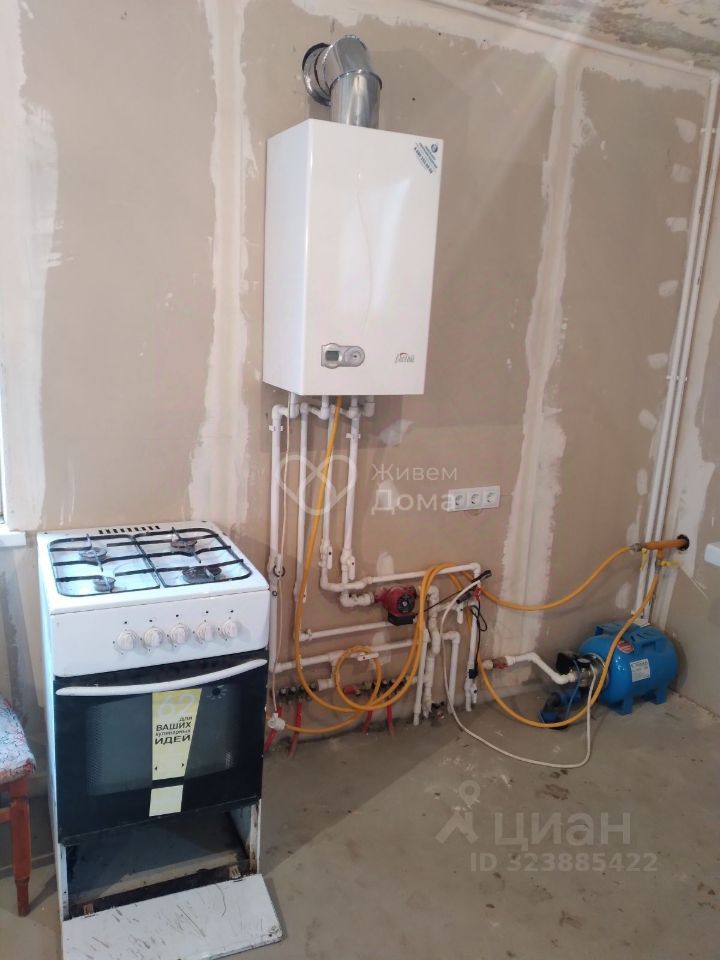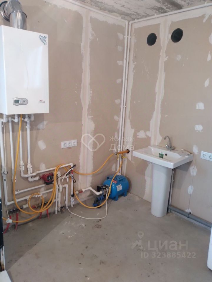 Дом сделан из блоков утеплен и нанесена декоративка не стены. На первом также кухня- гостиная, гостевая комната и санузел. На втором этаже 3 комнаты. Есть отопление, на первом этаже теплые полы.