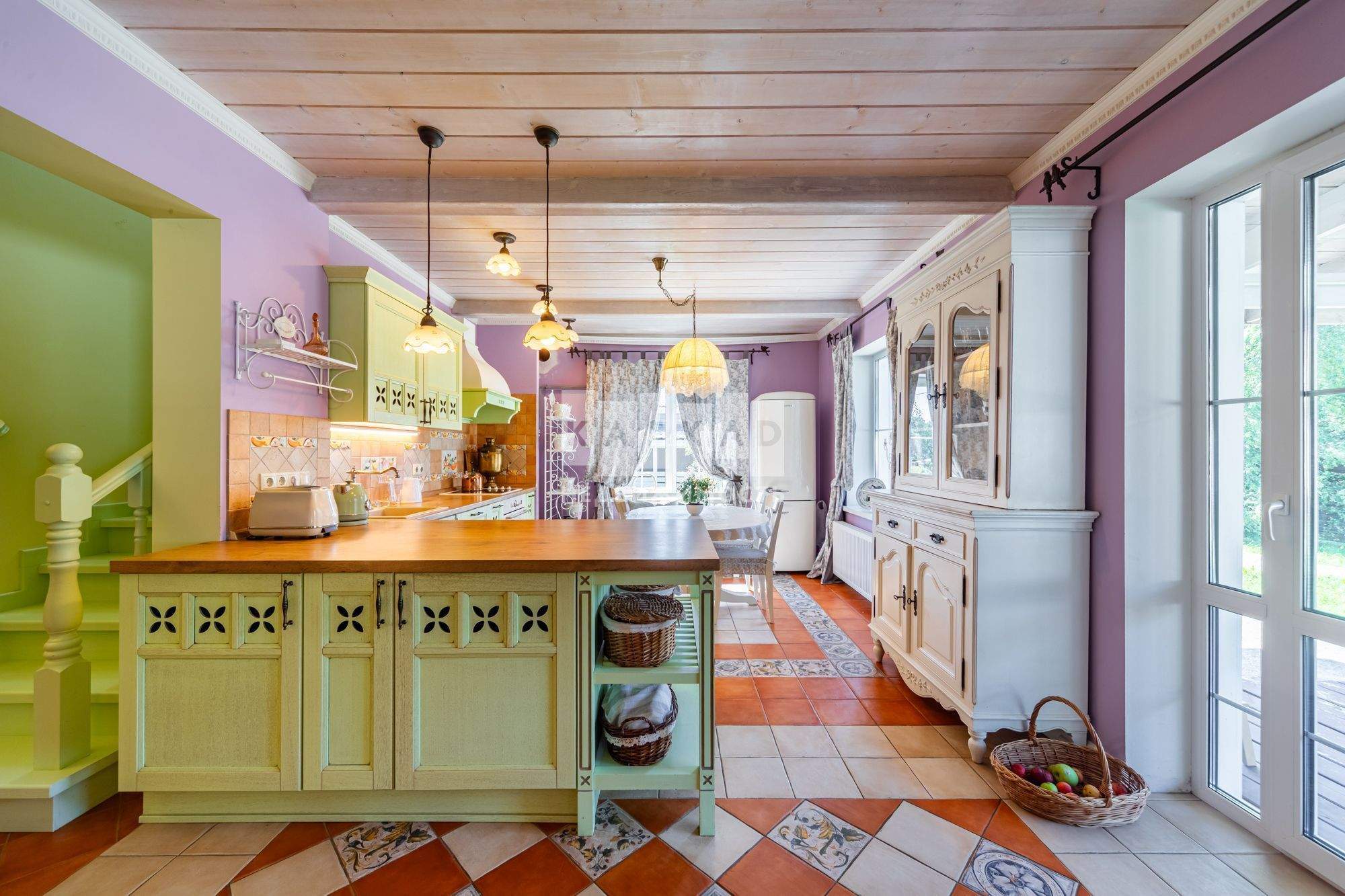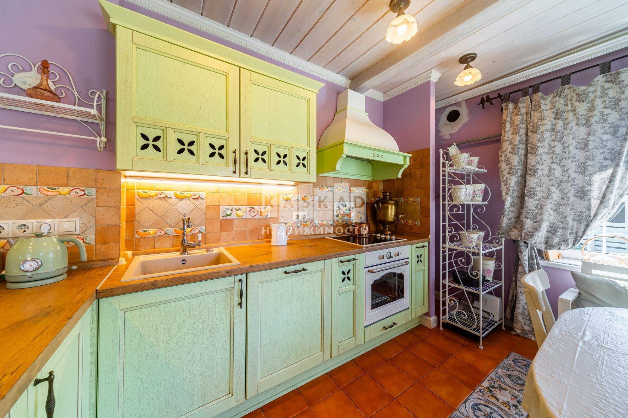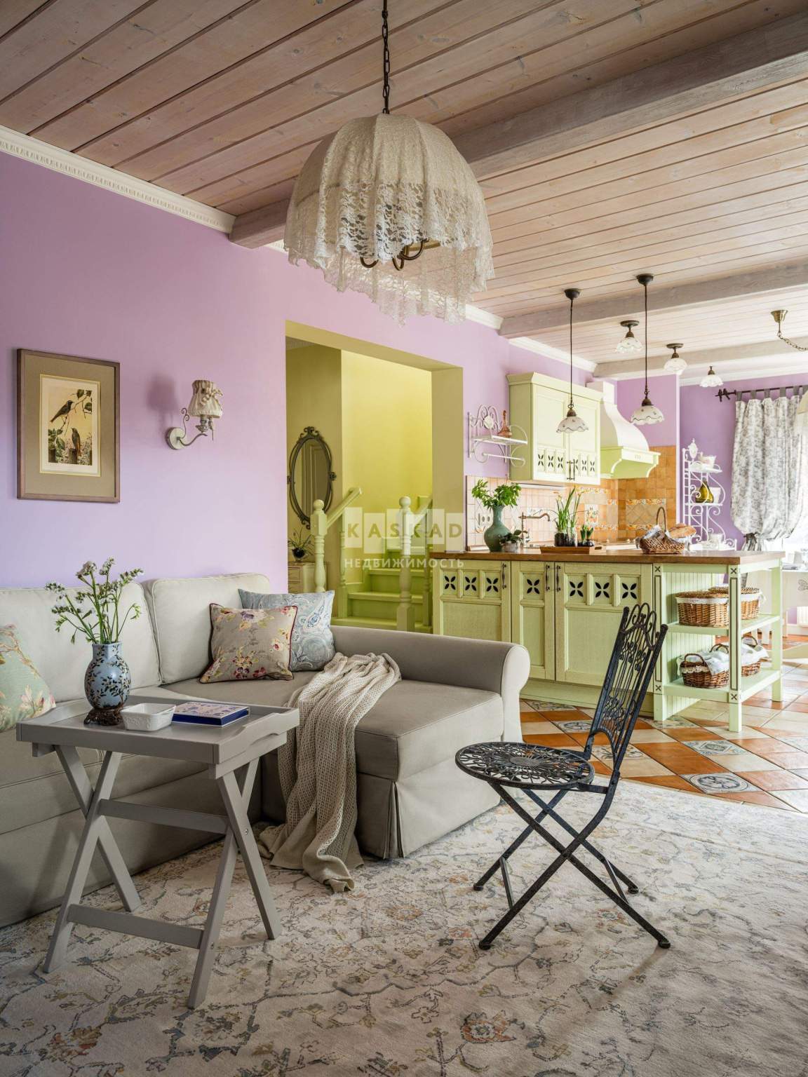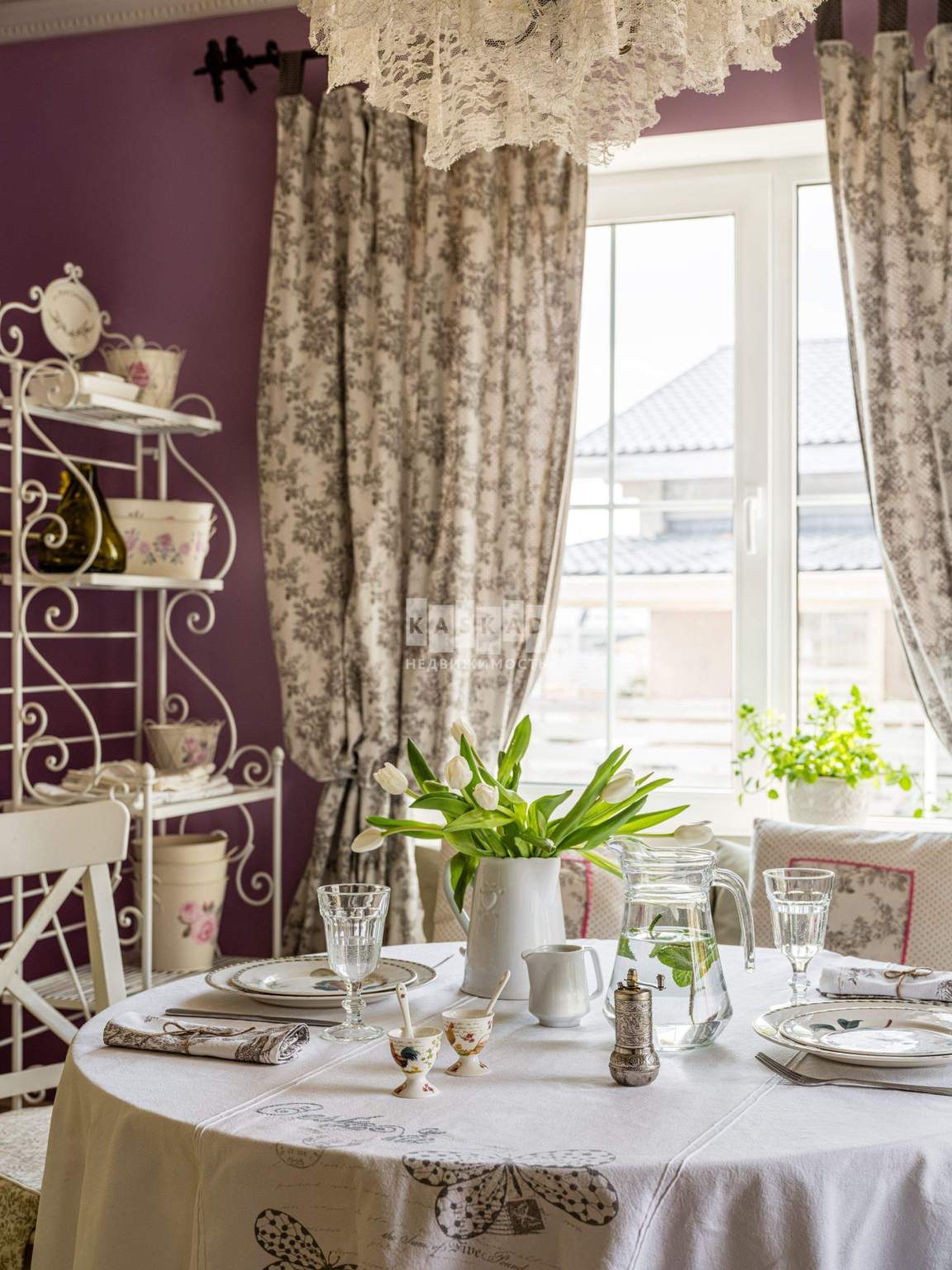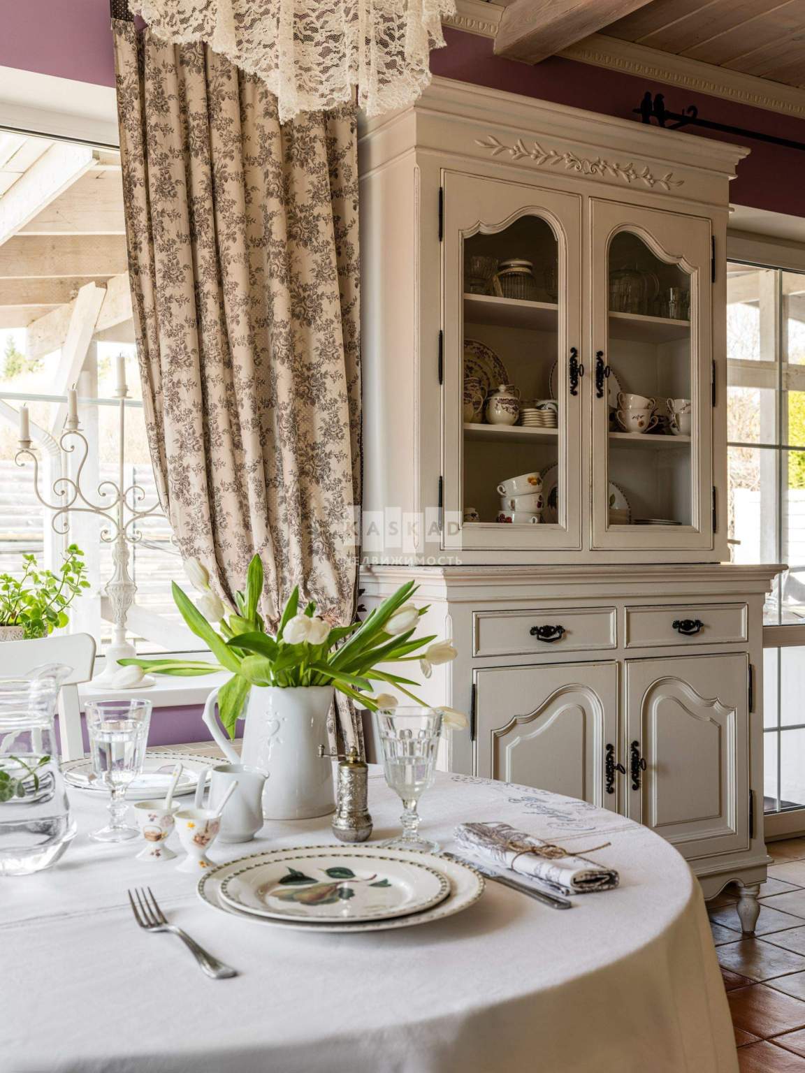 Уникальный уютный интерьер дома в стиле Французской деревни. На территории участка выполнен ландшафтный дизайн, остается мебель для сада в стиле «Прованс».