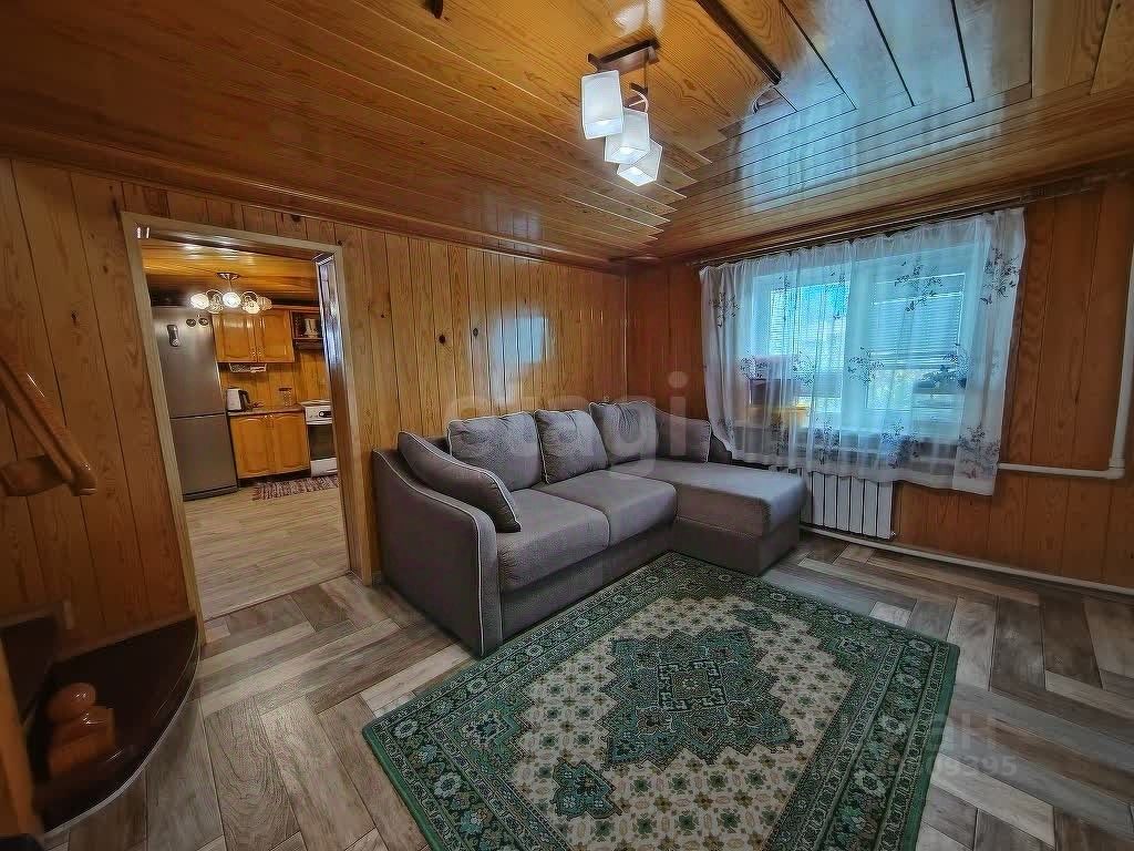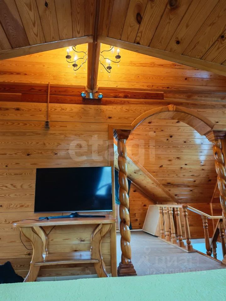 Внутренняя отделка -вагонка (натуральная древесина),в отделке использованы сосна, лиственница, липа из-за чего в доме благоприятный микроклимат для человека, так как древесина один из немногих материалов, обладающих способностью "дышать",т.е паропроницаемостью. Красивые две деревянные лестницы .Мебель и техника остается при продаже.