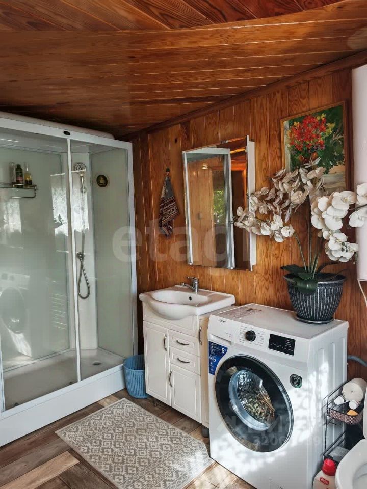 имеется баня, в которой установлен финский котёл и душевая комната, беседка во дворе, качели,скважина -45 метров глубиной, водоотведение -шамбо 10 куб.м