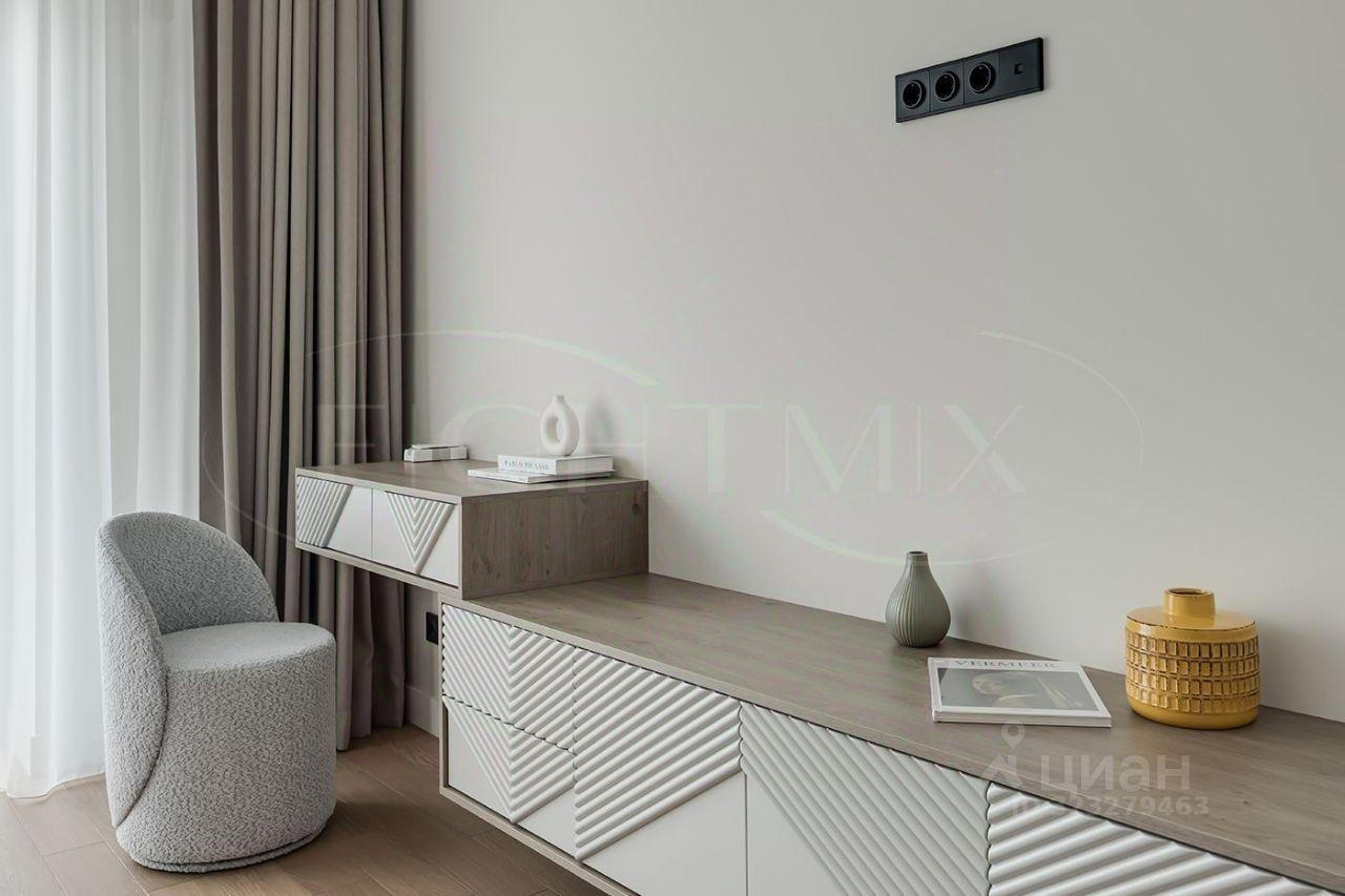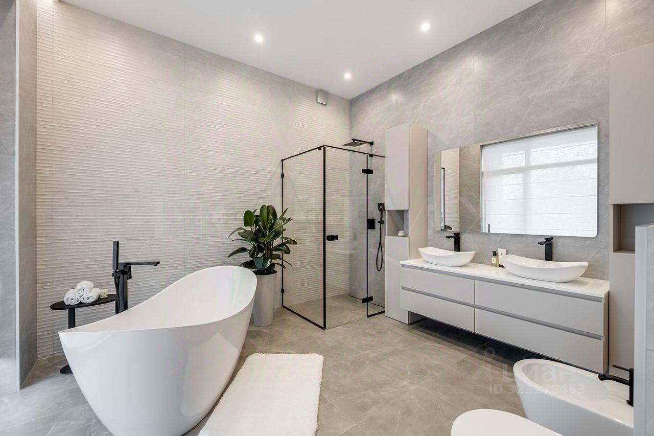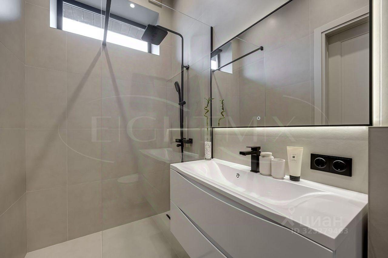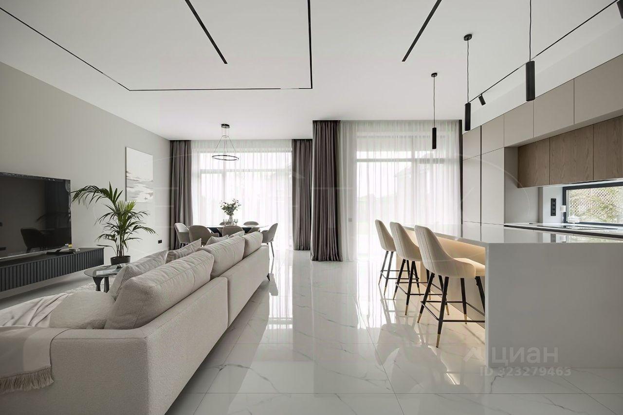 Внутренняя отделка выполнена из премиальных материалов, а интерьер дополнен стильной мебелью. В ванных комнатах установлена сантехника высокого класса. Панорамные окна, второй свет и высокие потолки 3.2 м