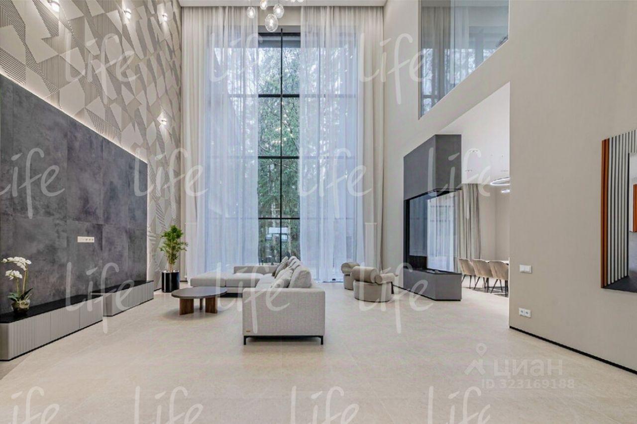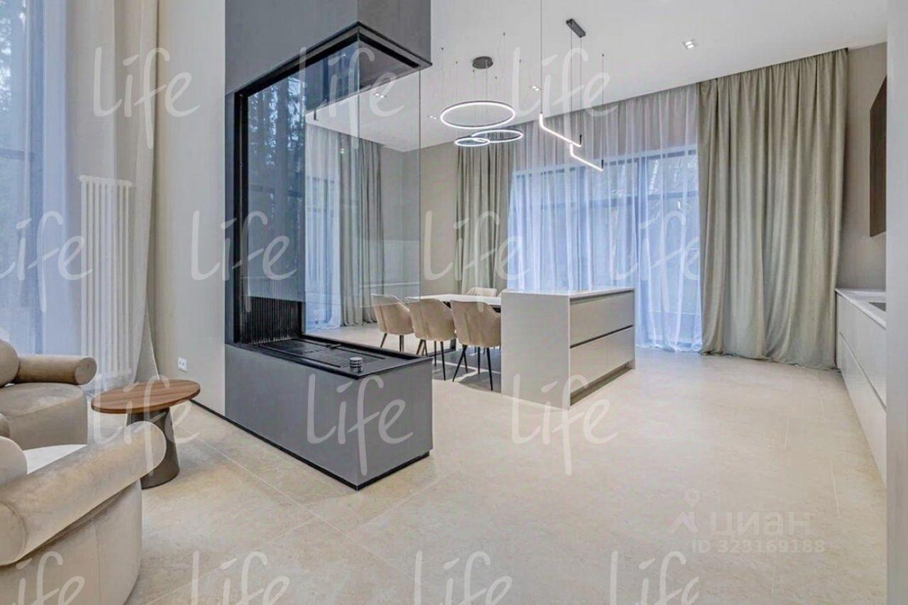 Дизайнерский интерьер выполнен в современном стиле, в мягких, светлых тонах. Со вкусом подобрана мебель и аксессуары. Использованы современные световые решения. Гостиная с вторым светом, высота потолков около девяти метров, ее украшает двухсторонний камин.
