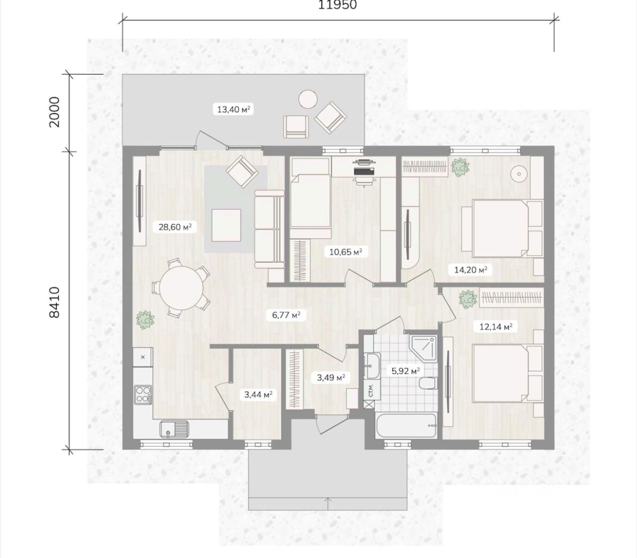 - 3 уютные спальни