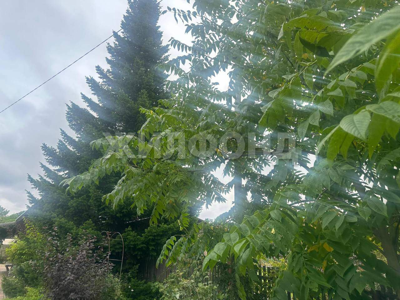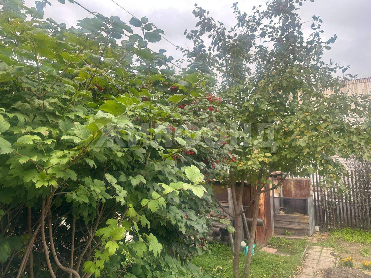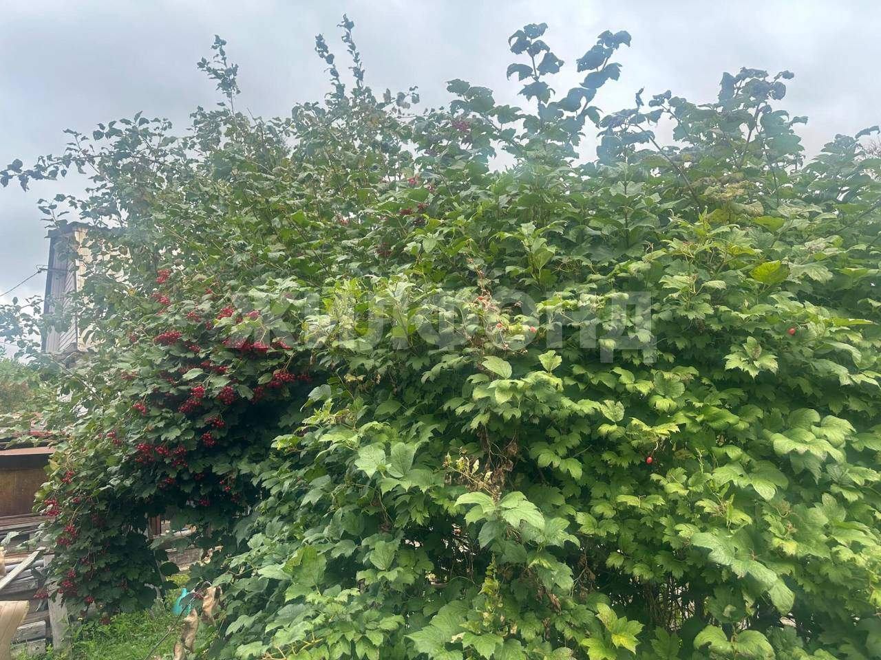 На участке растут плодово-ягодные кустарники и деревья ( яблони, малина, черноплодная рябина, калина, маньчжурский орех и др)