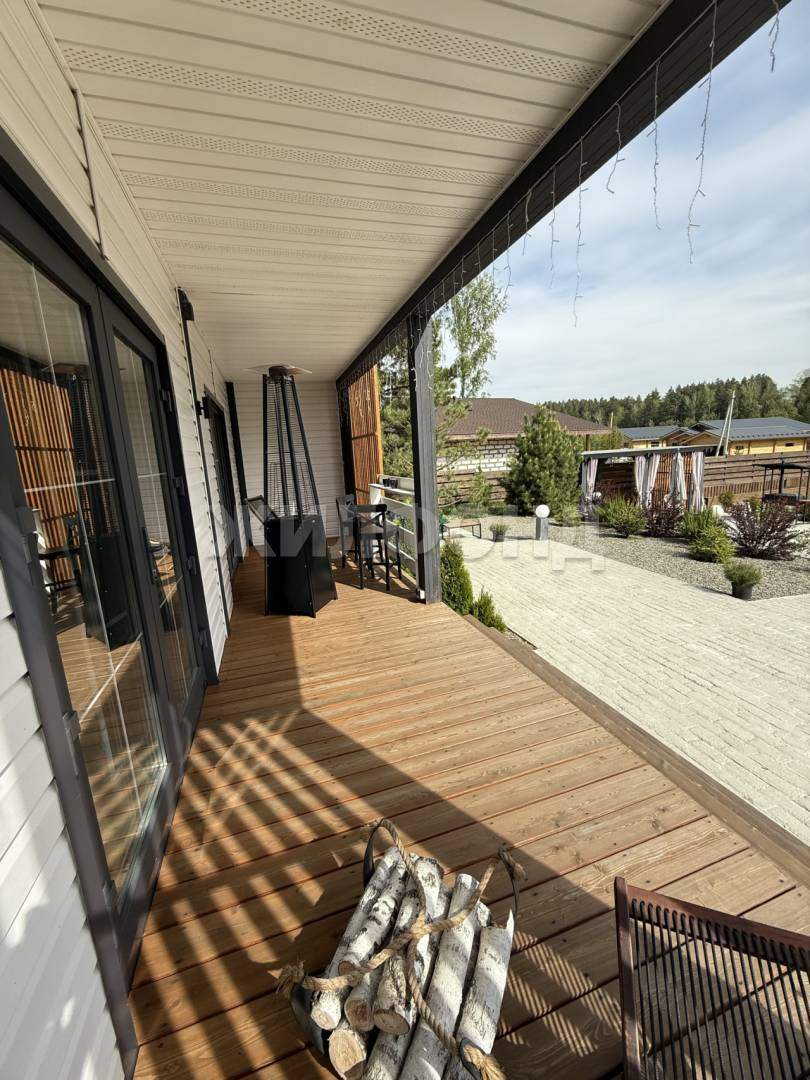 Дом энергосберегающий (площадь 174,6 м2) , построен из СИП панелей по канадской технологии на свайно-винтовом фундаменте. Установлена приточно вытяжная вентиляция с обогревательными тэнами. Окна кашированые мультипакет, противовзломная фурнитура, москитные сетки и двери-сетки.