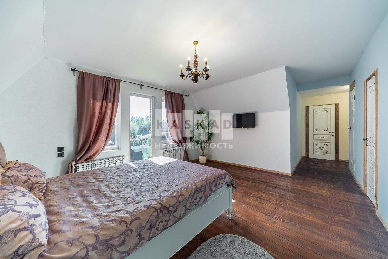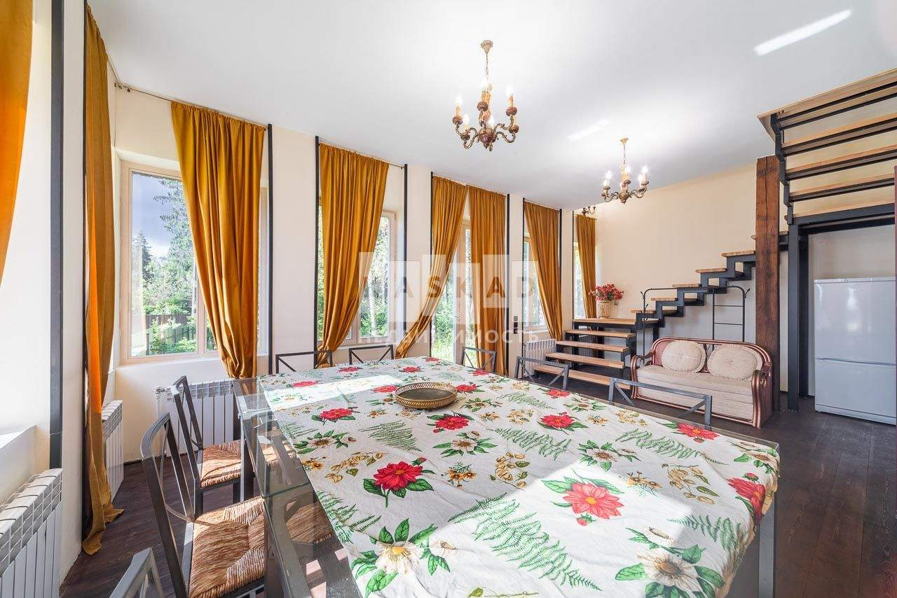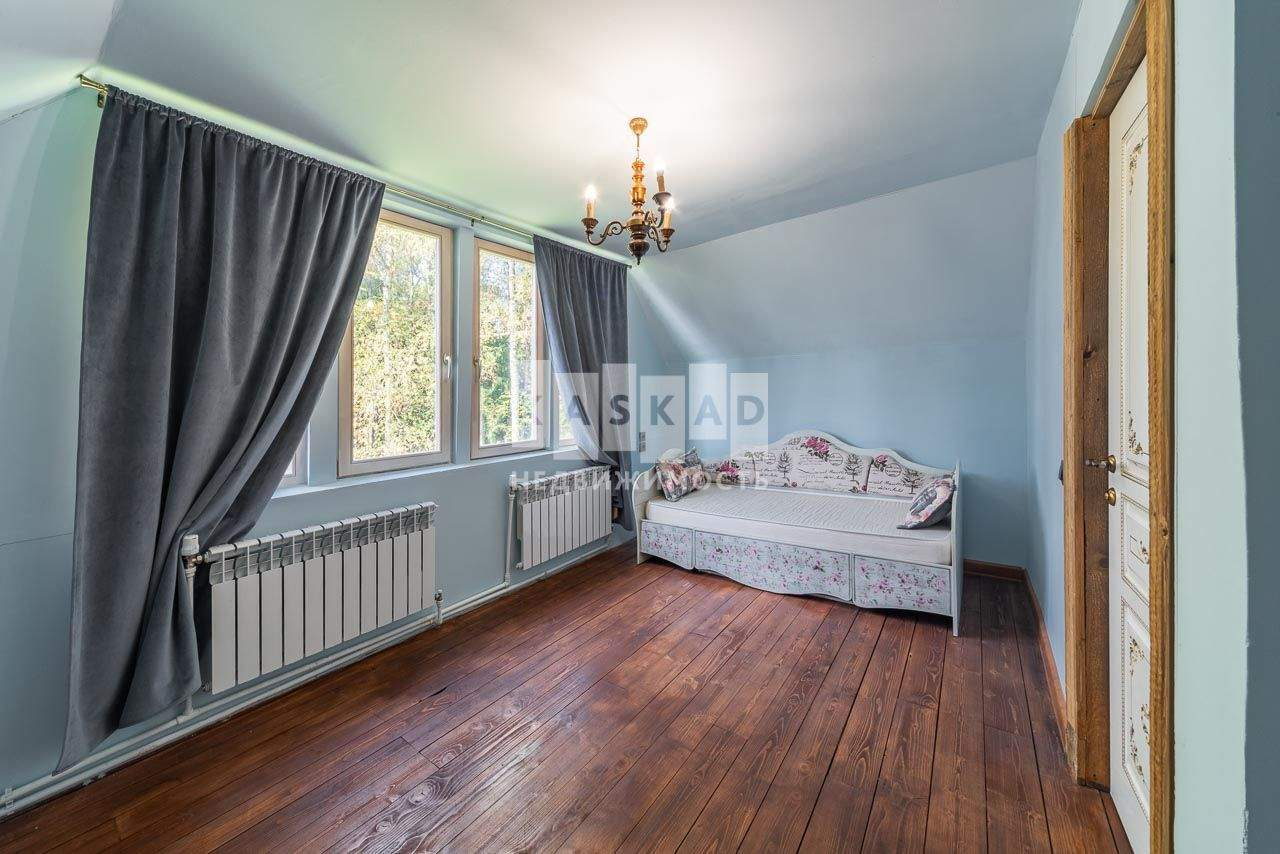 В охраняемом поселке предлагаем приобрести великолепный, качественно отремонтированный дом на 25 сотках земли с великолепными соснами и елями. При этом на участке много солнечного света и простора.