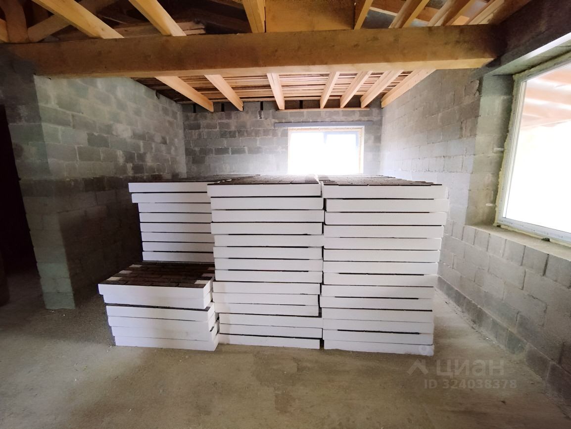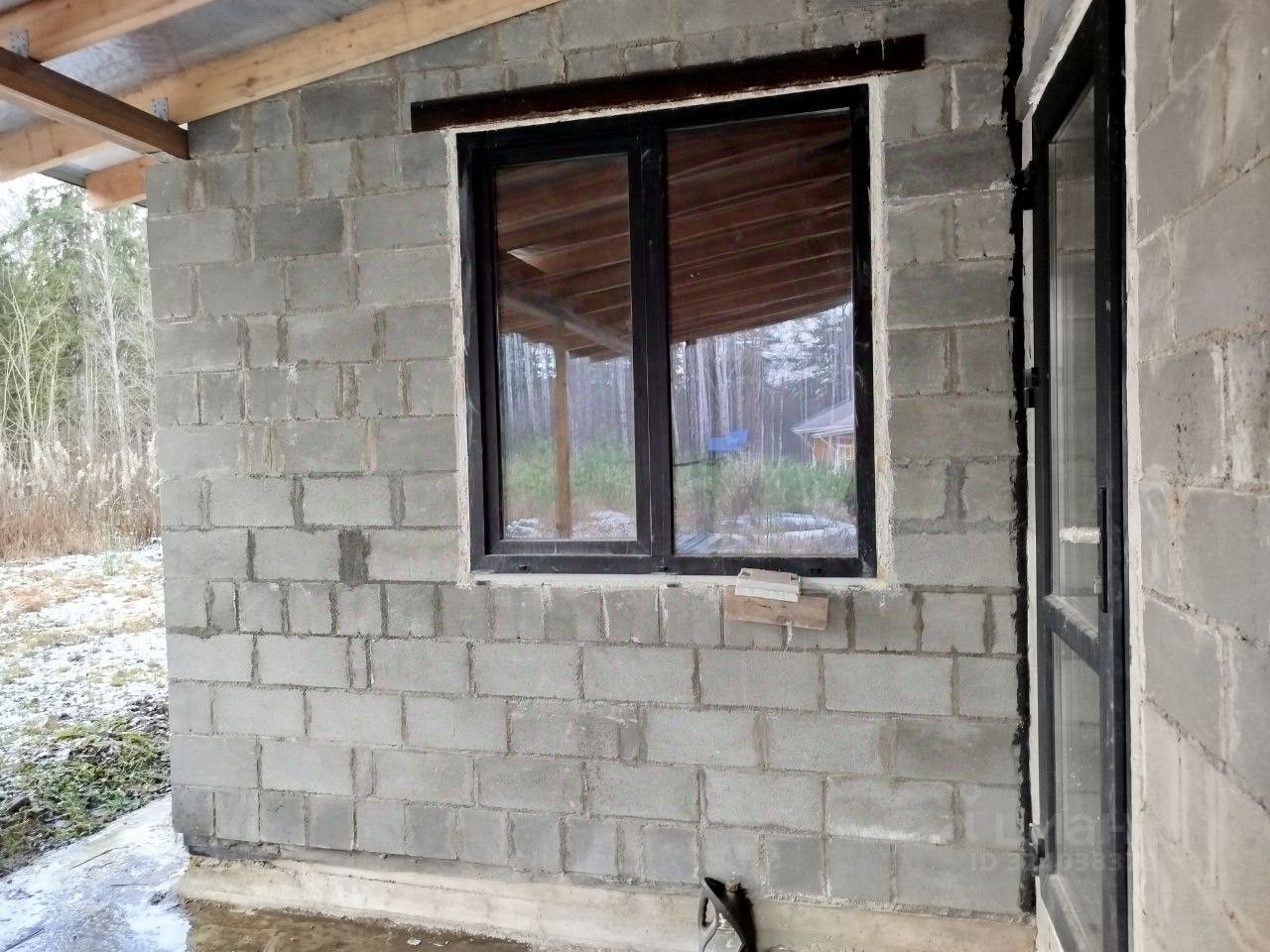 Дом построен на монолитной плите толщиной 300 мм, стены выполнены из бетонных блоков (толщина стен в два блока по 200 мм), крыша покрыта металлочерепицей. Утепление дома планируется термопанелями 100 мм с имитацией кирпичной кладки (закуплены на всю площадь дома) Установлены 2-х камерные стеклопакеты.