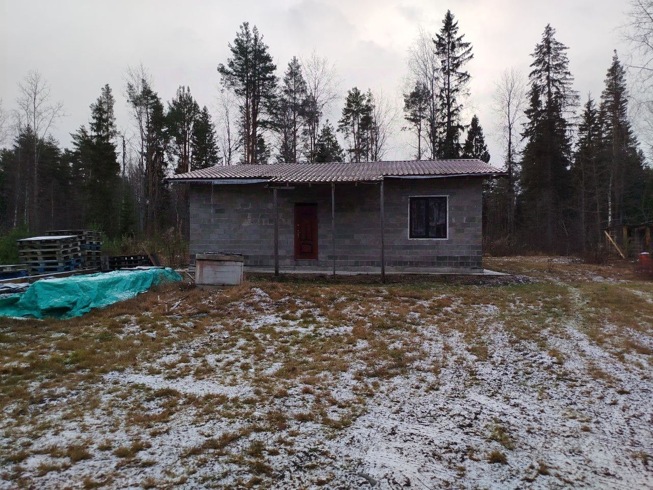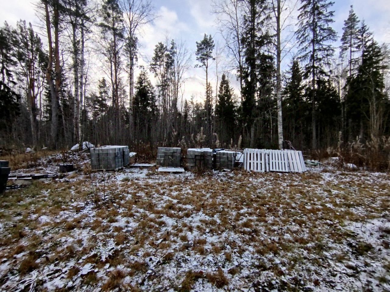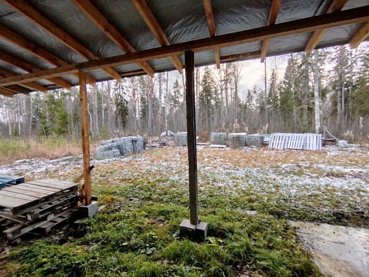 В комплекте с домом идут материалы для хозяйственных построек (бетонные блоки).