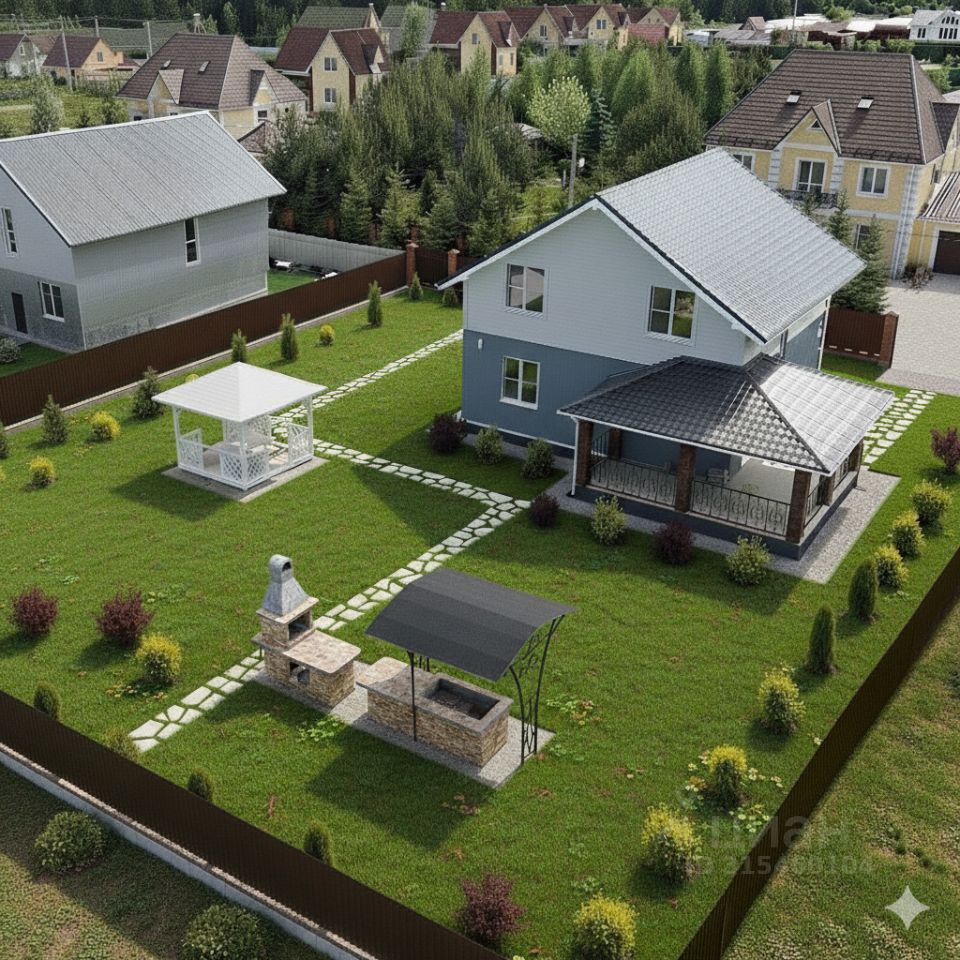 Дом: 104.8 кв.м, фундамент-ленточный+монолитная плита, стены-брус 150х100 +10 см утепление. Кровля-металллочерепица. Окна- двойные стеклопакеты .