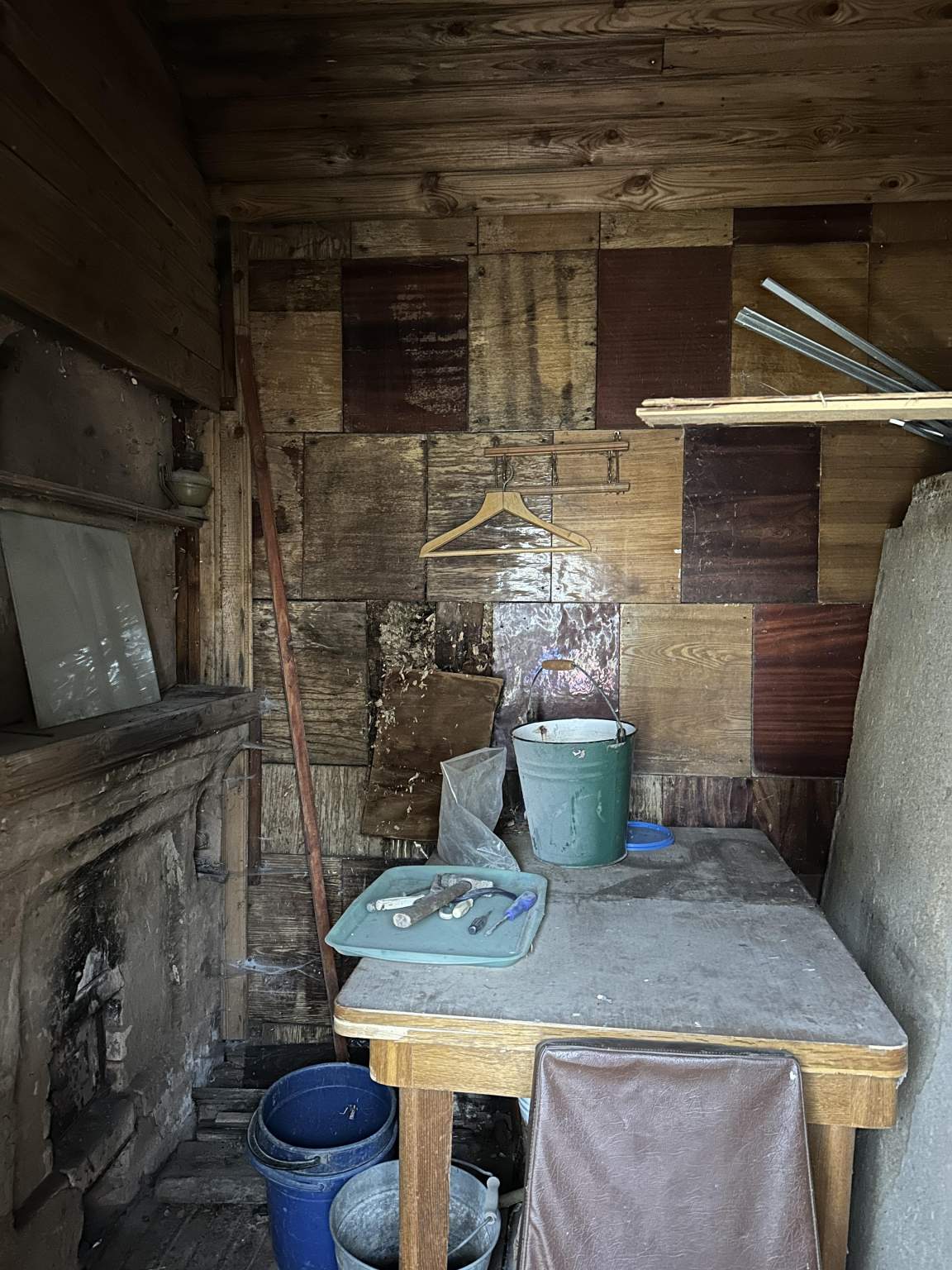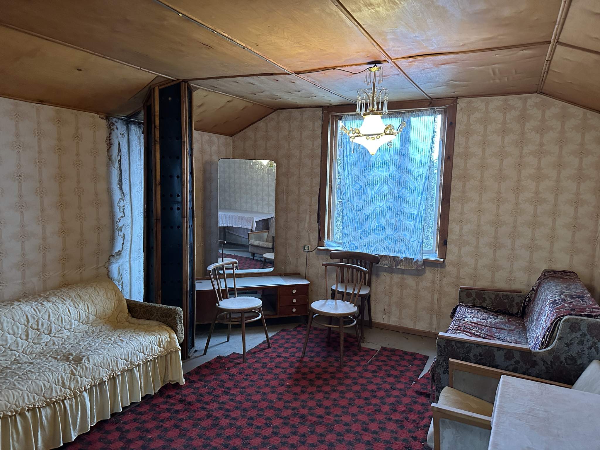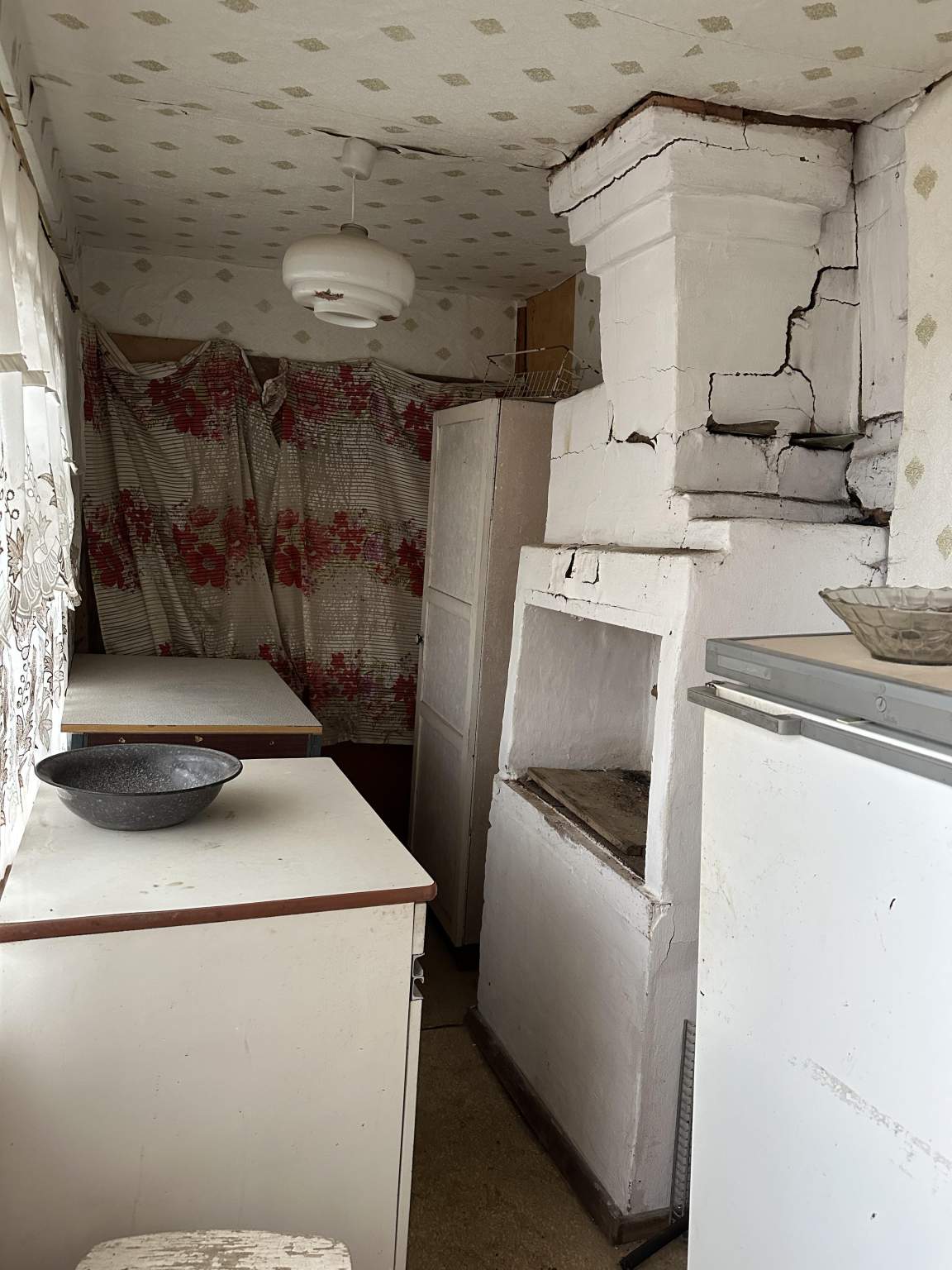 Домик требует ремонта камина и полов в комнате на первом этаже.