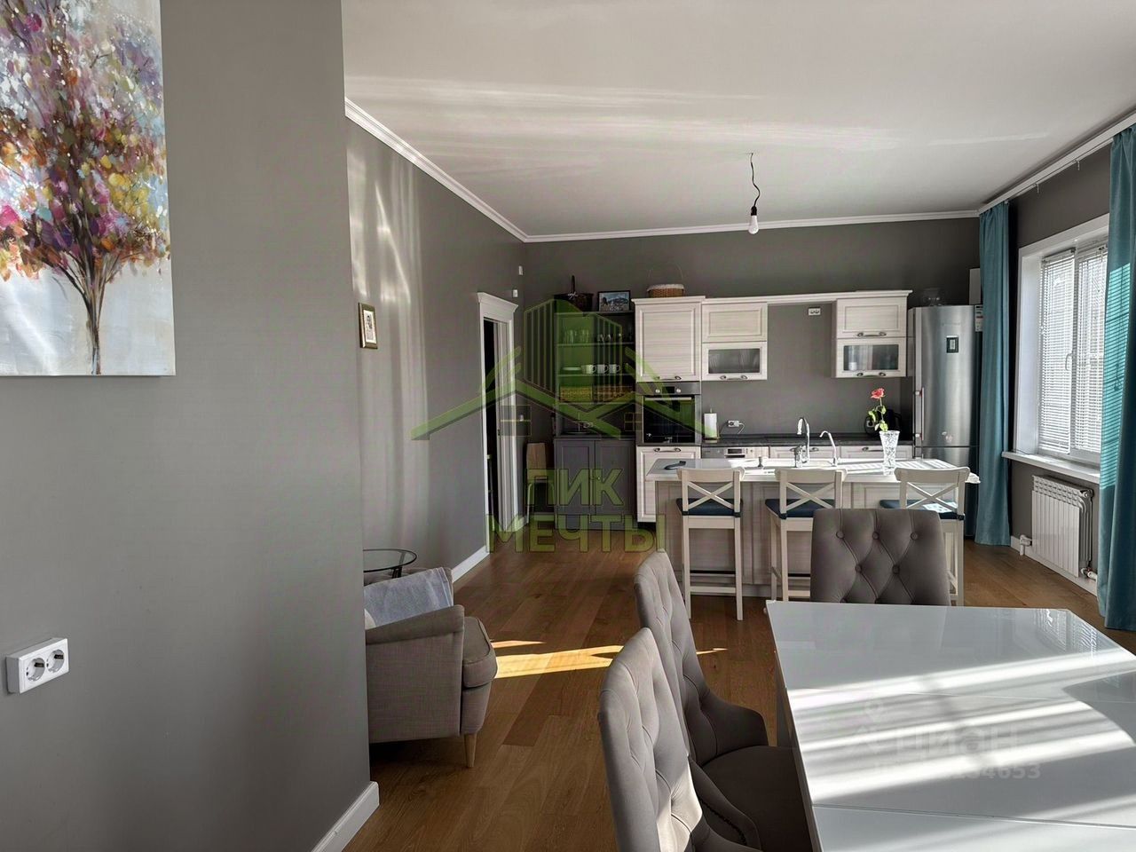 Дом теплый, солнечный. Качественные панорамные окна, натуральный деревянный паркет, отделка стен - штукатурка, покраска, качественные межкомнатные двери (Волховец).