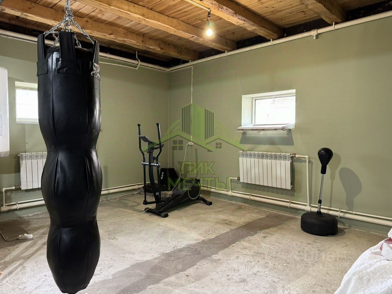 Стены цокольного этажа полностью из бетона, покрыты слоем утеплителя и фасадными панелями. Первый этаж сложен из бруса, стены также покрыты утеплителем и фасадными панелями.