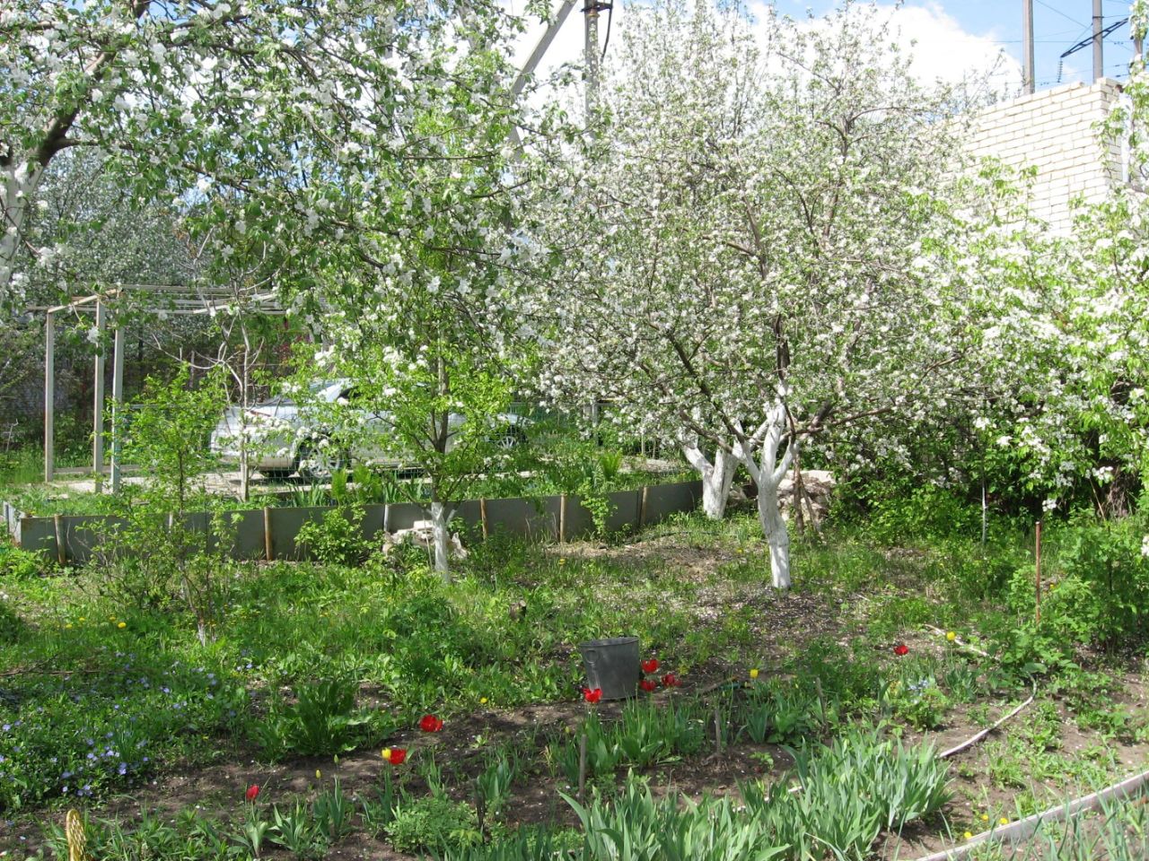 4. Ухоженный участок (7 соток): Ровный участок с плодовыми деревьями (яблони, черешня, орех, абрикос, груша) и удобствами (туалет). Участок состоит из 2 участков (5,55 и 1,34 сотки, один хозяин)