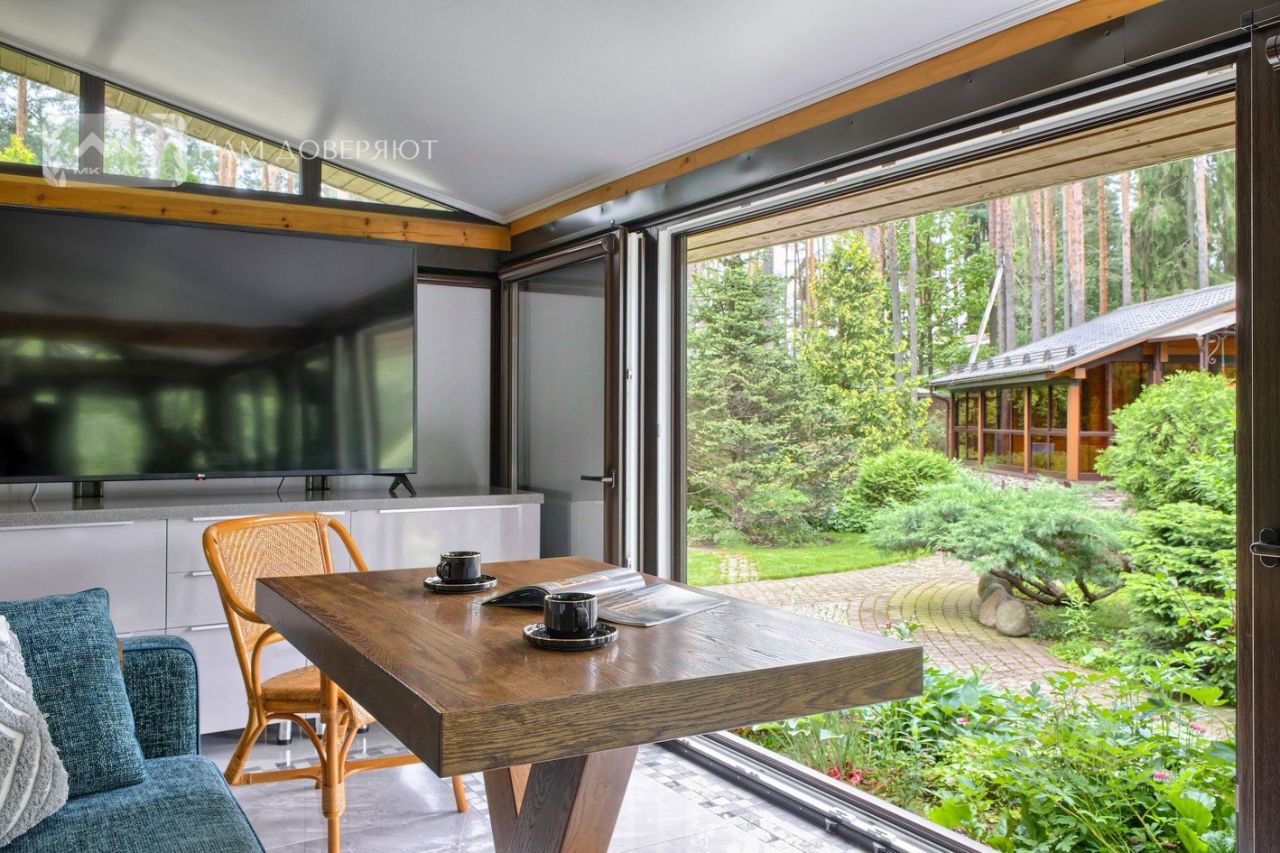 На первом этаже закрытое террасное пространство с раздвижной зимней системой панорамных окон в рост