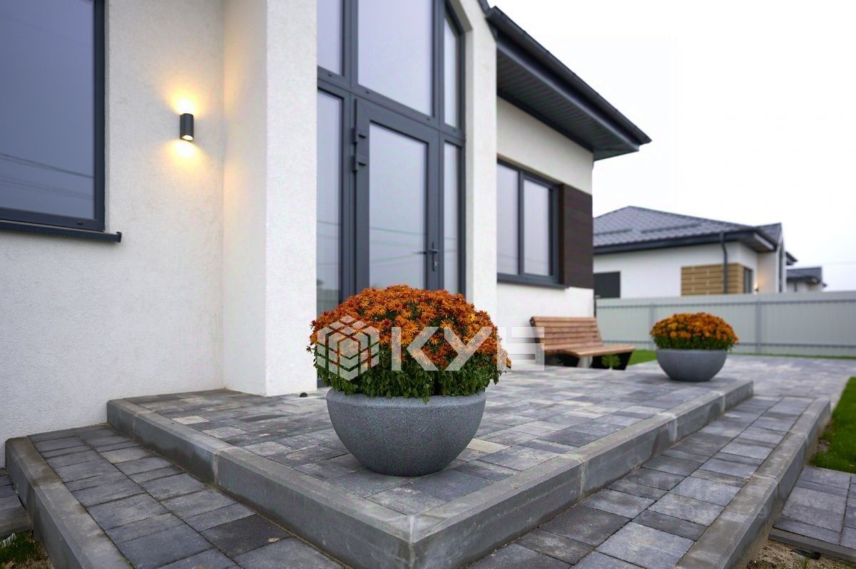 - Дом выполнен в современном европейском стиле. Внутренняя отделка - белый ключ. Очень светлый с большими окнами. Все элементы коммуникаций вынесены в отдельное помещение с отдельным входом (двухконтурный котел, счетчики т.д.) Территория огорожена, автоматические откатные ворота