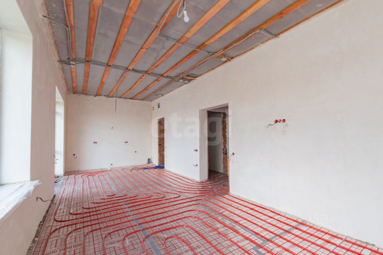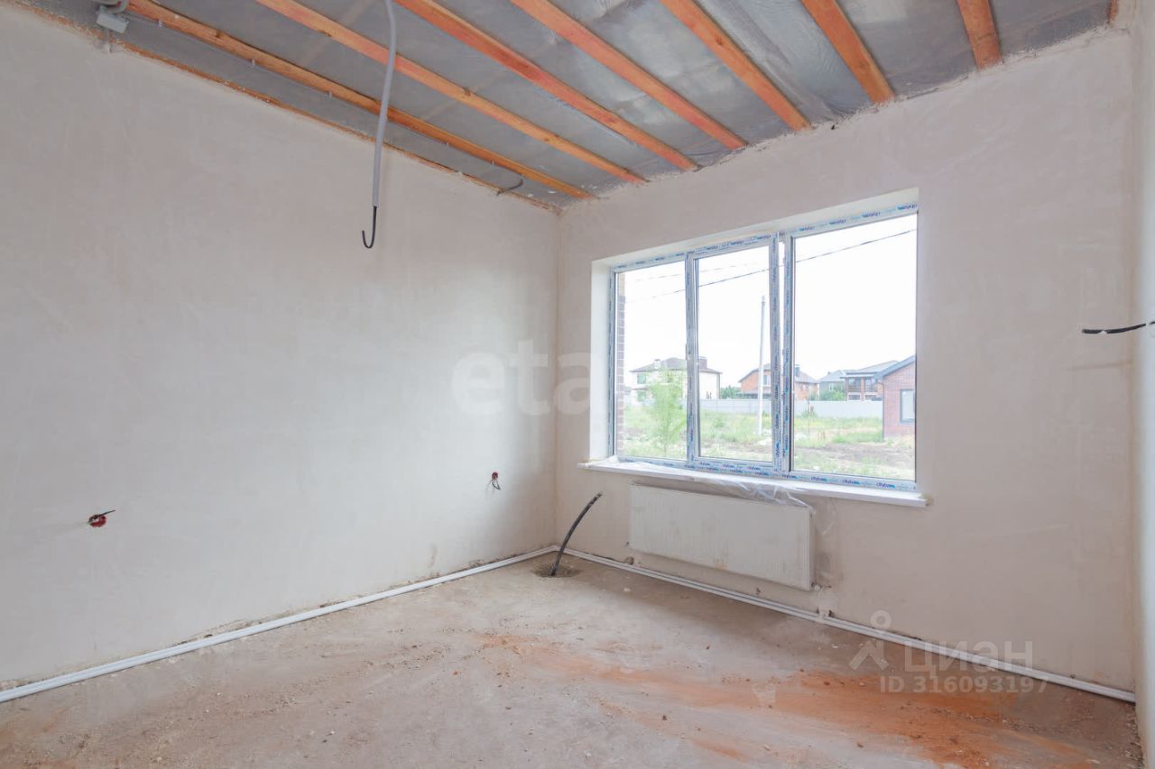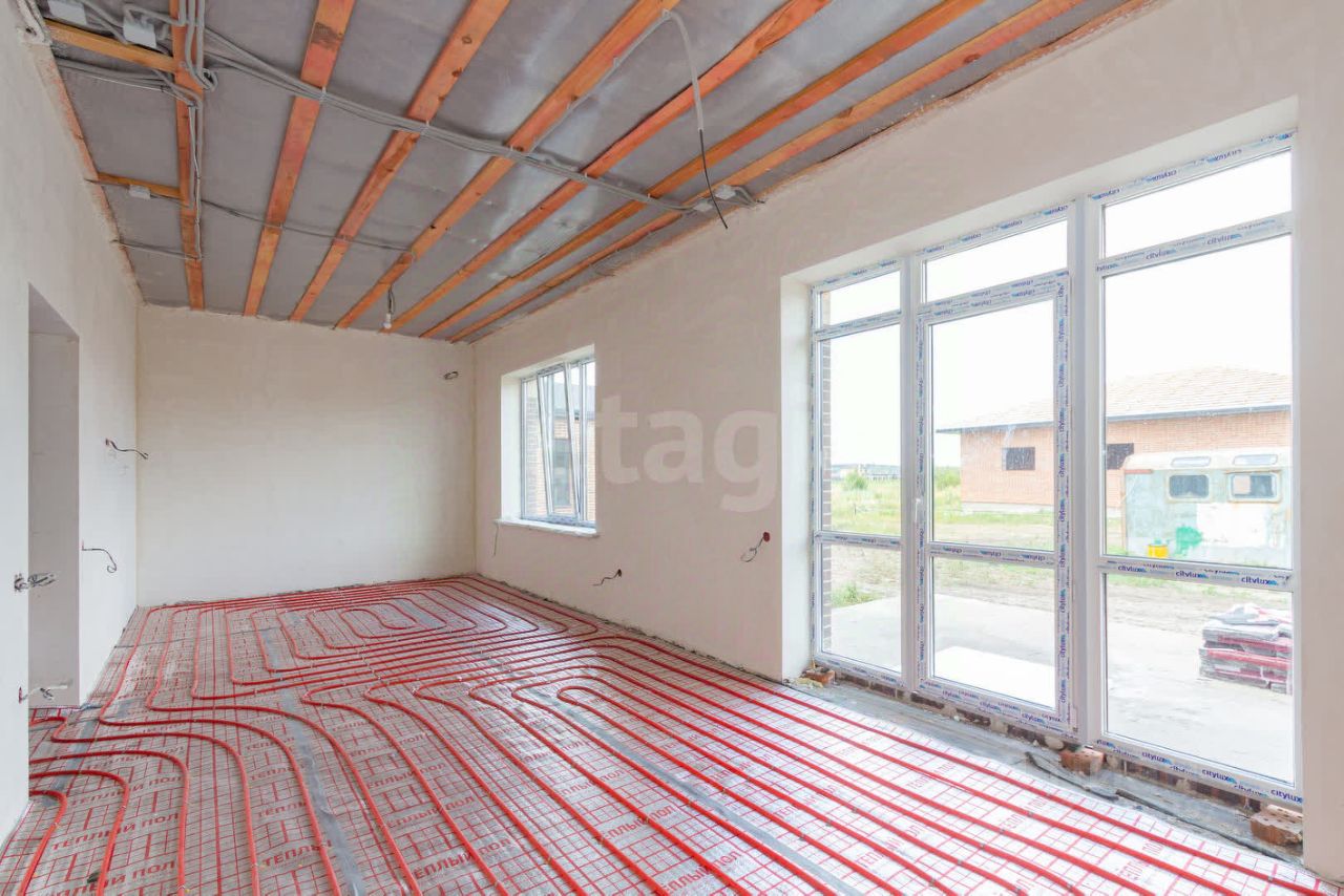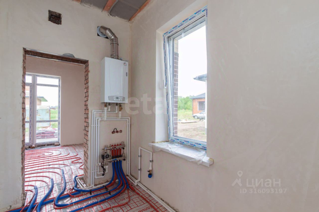В доме выполнена чистовая стяжка, оштукатурены и отшлифованы стены в два этапа. Дом полностью подготовлен к оклейке обоев. Все черновые работы выполнены. Газ, свет и вода проведены. В доме тёплый пол и газовый котёл.