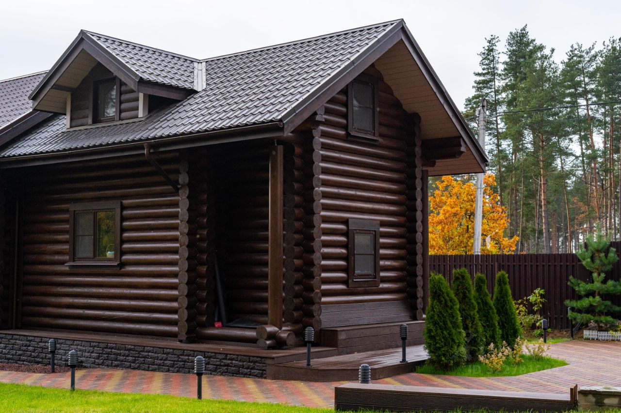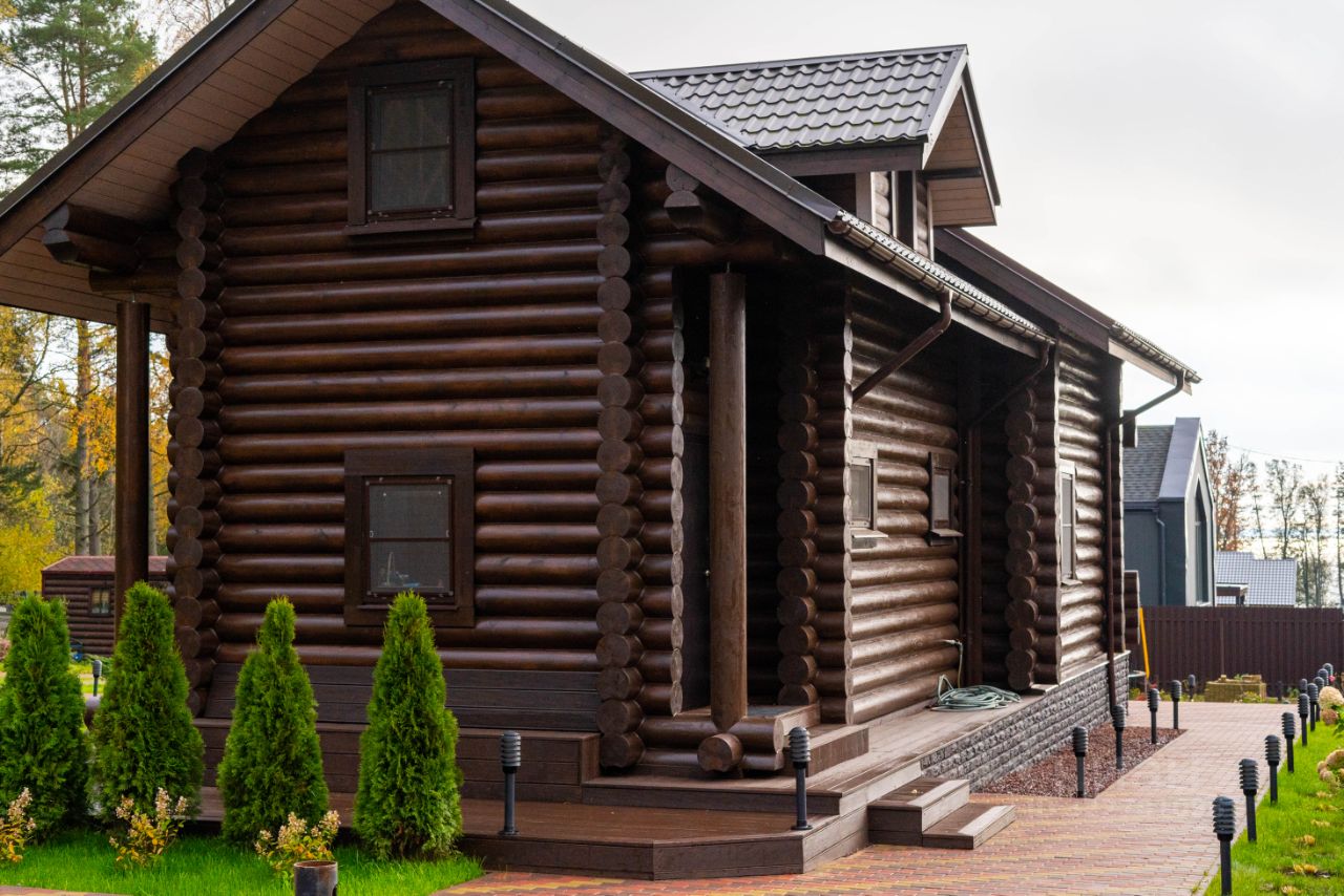 Стены: сруб 28 см в диаметре, выкрашены Teknos.