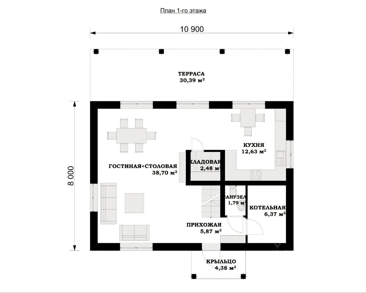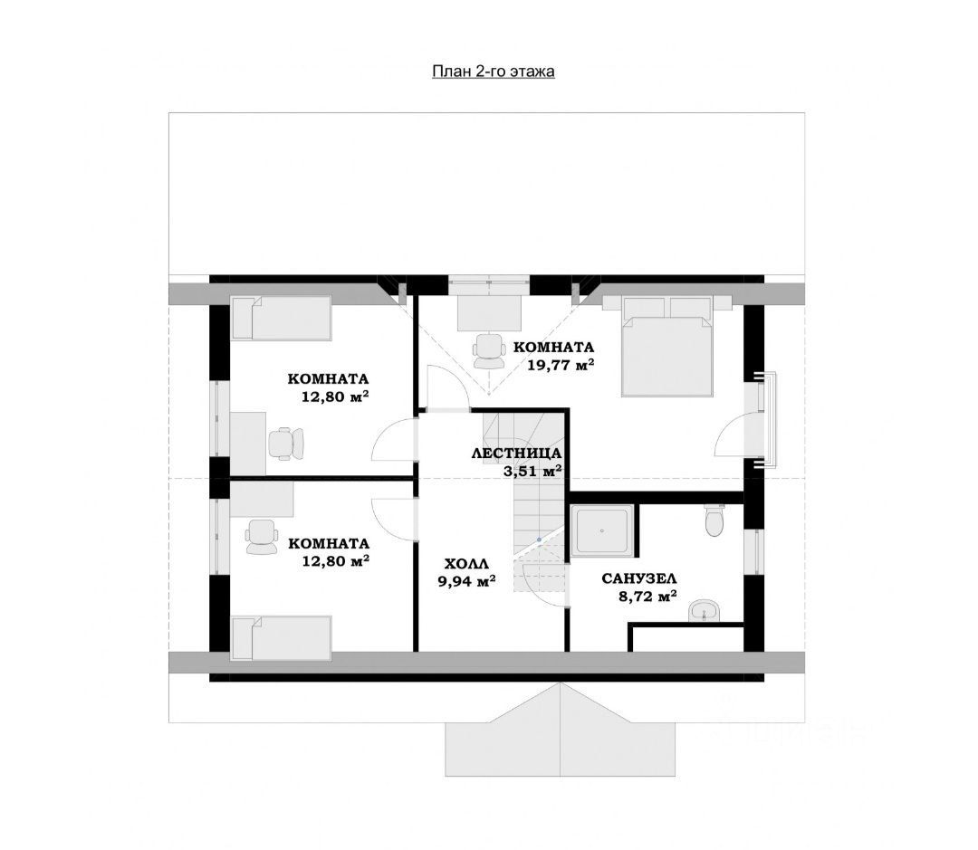 Двухэтажный дом 118.4 кв.м. для ценителей уюта и комфорта. Просторная кухня-гостиная 51.33 кв.м., кладовая, котельная и санузел на первом этаже, на втором 3 спальни и санузел.