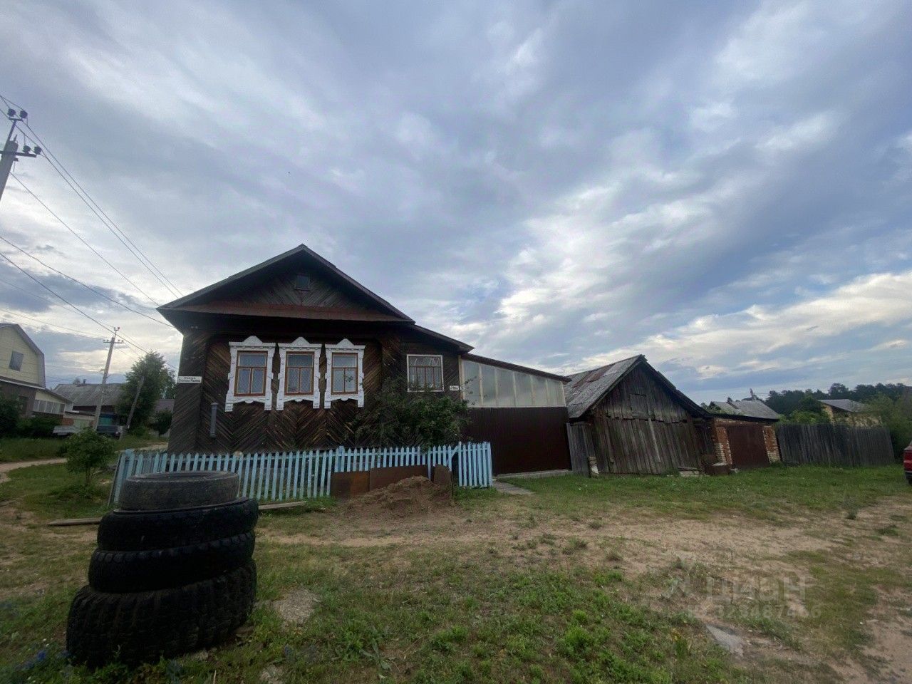 Дом построен из качественных материалов: стены - бревенчатые, что обеспечивает отличную тепло- и звукоизоляцию, а бетонный фундамент гарантирует долговечность постройки.