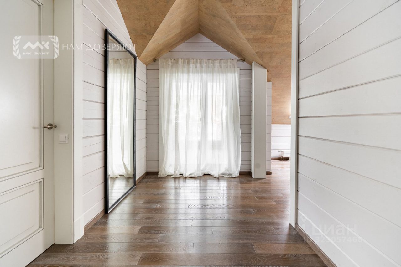 Дом построен из клееного деревянного профилированного бруса производства "НЛК Домостроение" известным застройщиком Olymp Group, с опытом более десятка загородных поселков бизнес-сегмента.