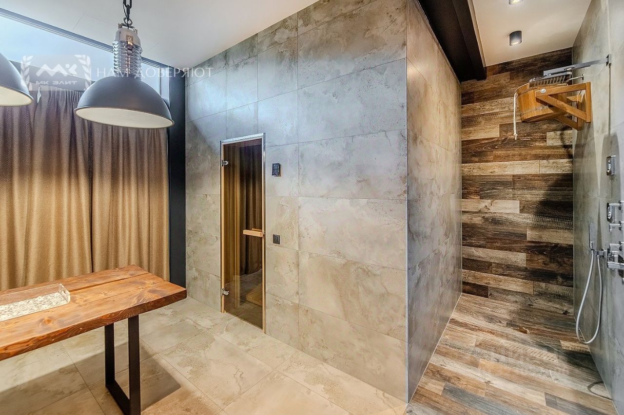 Только премиальные мебель и техника: итальянская кухня Scavolini, встроенная техника Smeg, итальянский поворотный камин. Люстры и светильники Eichholtz. Санфаянс Flaminia. Сантехника Webert. Мебель в санузлах Tomasella и Disel. В сауне - авторское панно из дизайнерской плитки с напылением натуральным золотом.