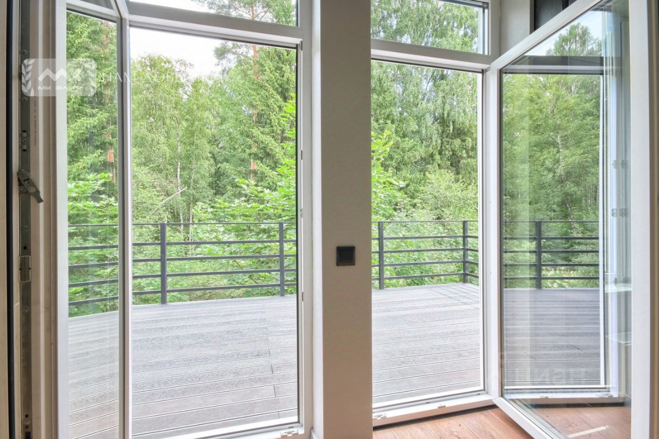 На втором этаже разместились 3 спальни. Большая мастер-спальня с санузлом и гардеробной имеет выход на шикарную террасу с видом на лес, где по утрам можно наслаждаться завтраком за чашкой кофе, а вечером наблюдать закаты. Две гостевые спальни также имеют собственные санузлы и выходы на балкон.