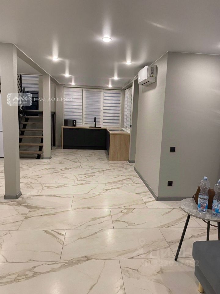 Первый этаж занимает просторная стометровая кухня-гостиная и гостевой санузел. Высокие потолки и панорамные окна создают обилие света и простор. Смонтирован теплы пол, установлена система кондиционирования!