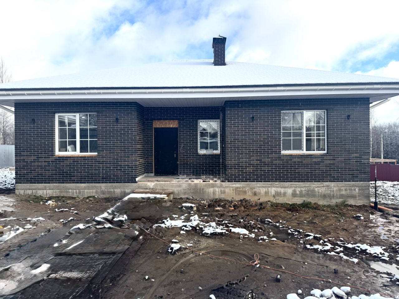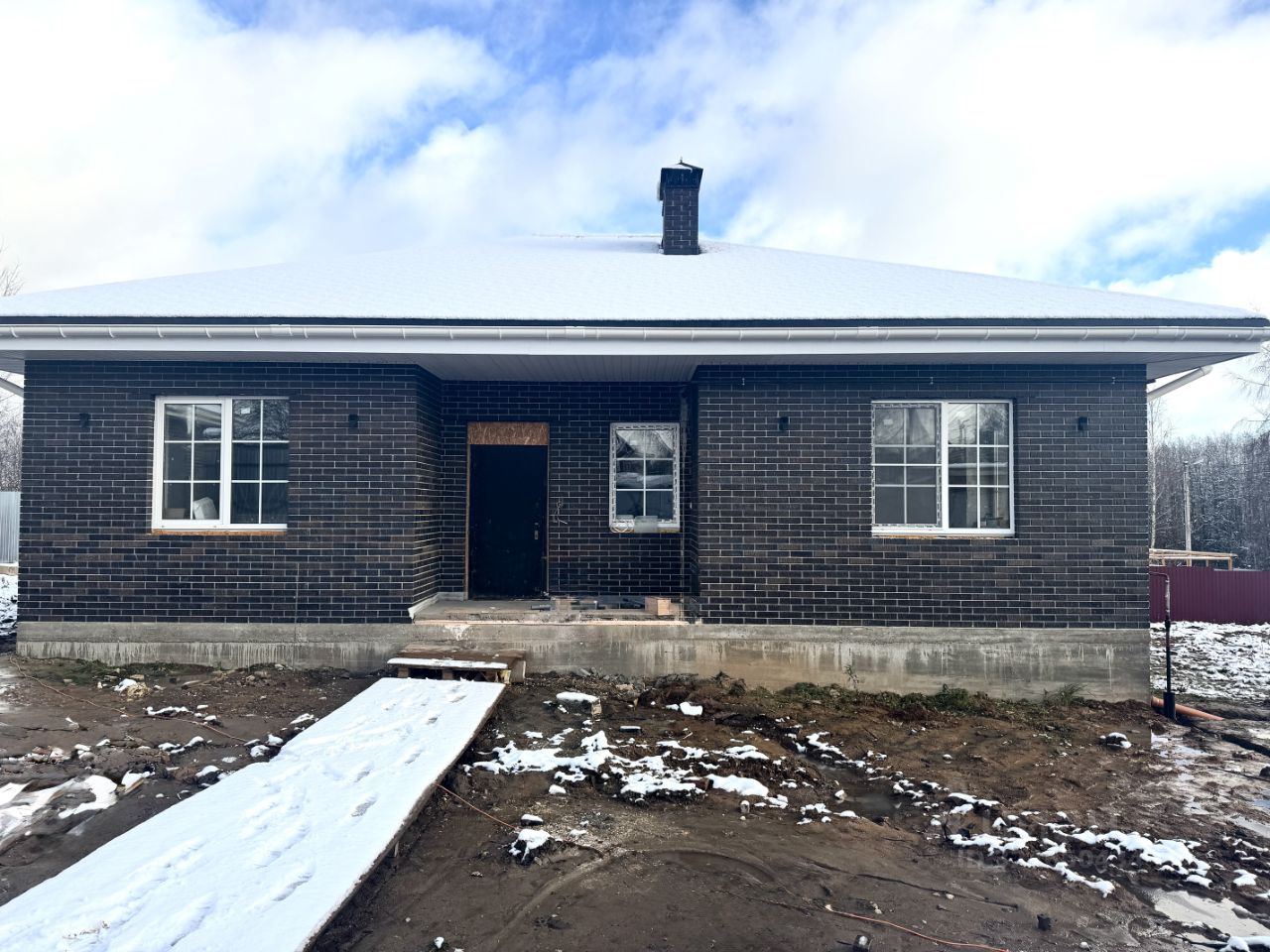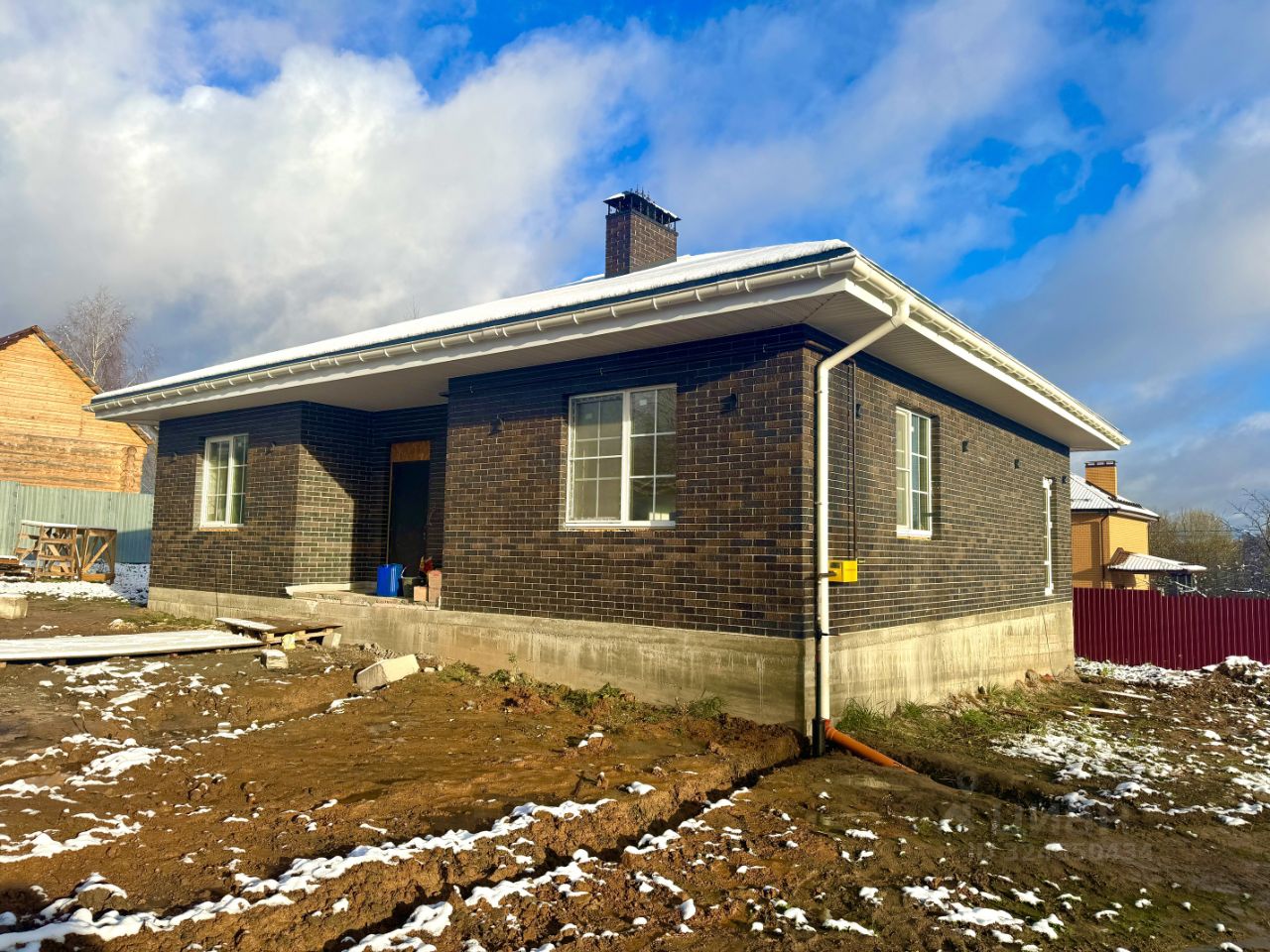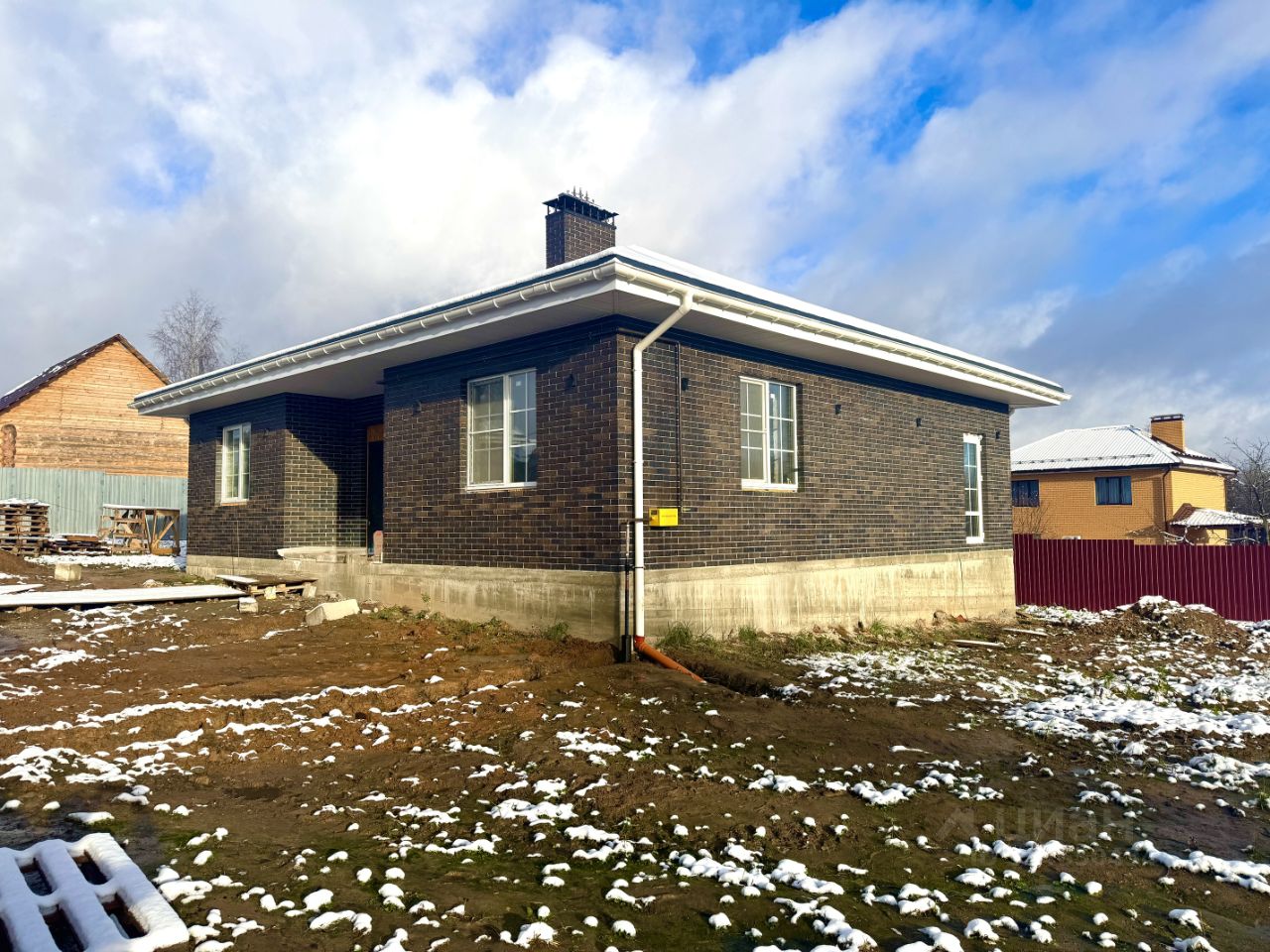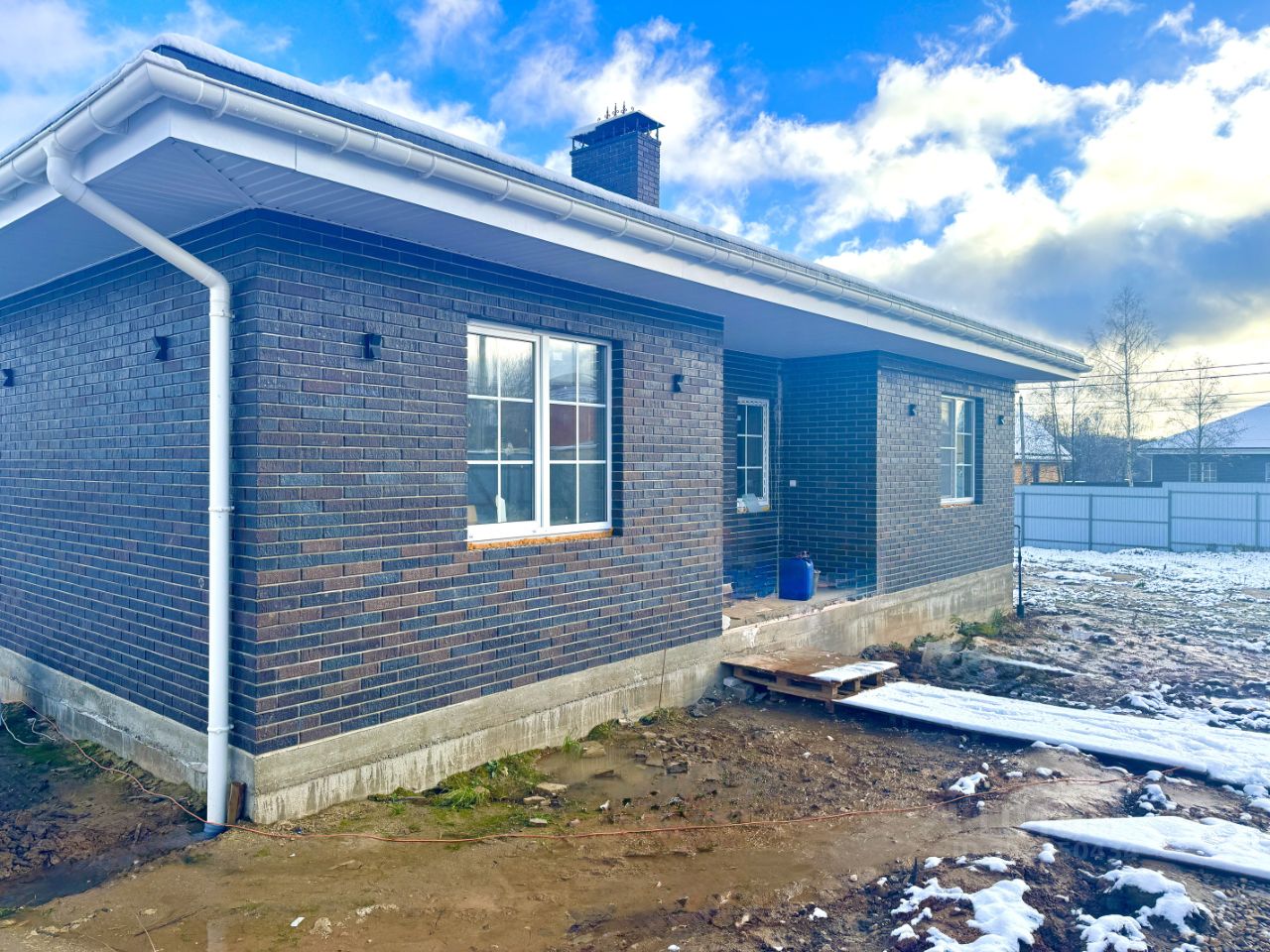 Дом общей площадью 106 кв.м. фундамент свайно-ростверковый на монолитной плите, толщиной 200 мм, конструктив газосиликатный блок, плюс отделка облицовочный кирпич, крыша вальмовая, покрытие металлочерепица.