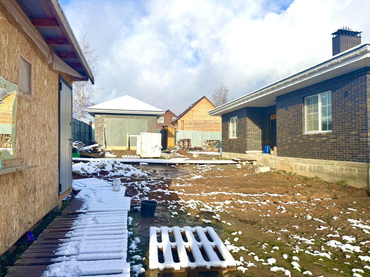 На участке при въезде расположен гараж, площадью 25 кв.м, так же выполнен на монолитной плите, конструктив газосиликатный блок и облицовочный кирпич, все коммуникации в гараж заведены.