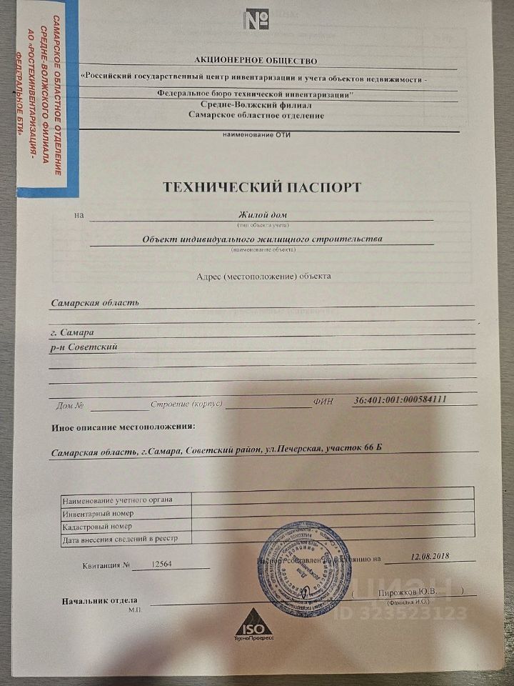 Кадастровый номер участка: 63:01:0910002:562