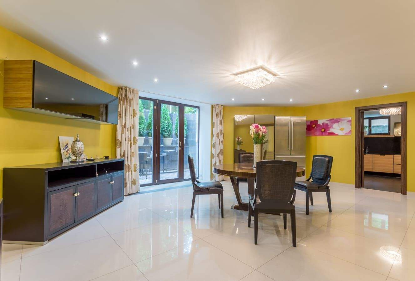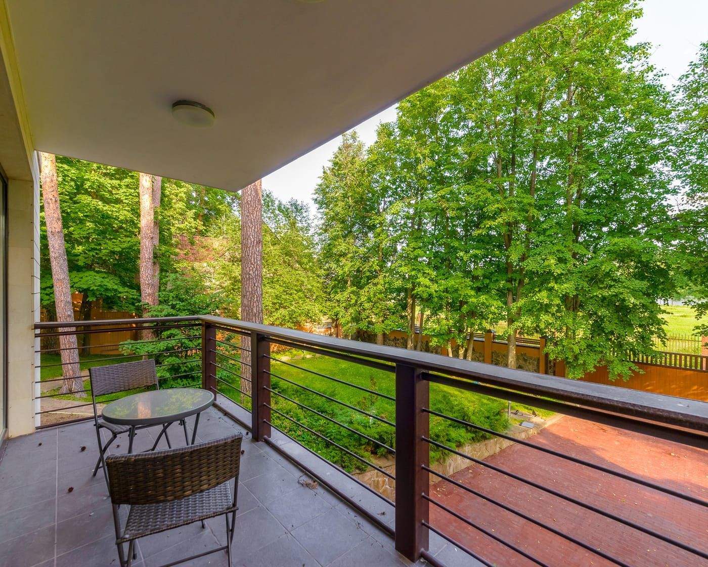 Интерьер дома выдержан в современном стиле, каждая комната в своем цвете. На участке 15 соток растут вековые лесные деревья и декоративные туи, у дома в зоне патио установлен мангал.