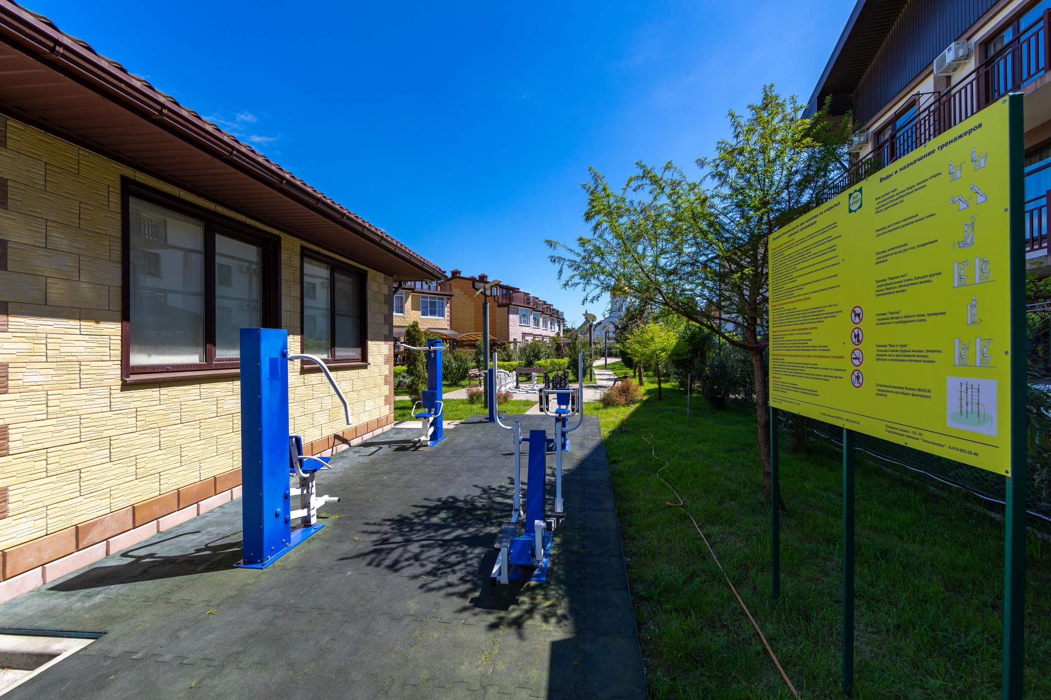 - оборудованы зоны отдыха, детские и спортивные площадки, теннисный корт, тренажеры