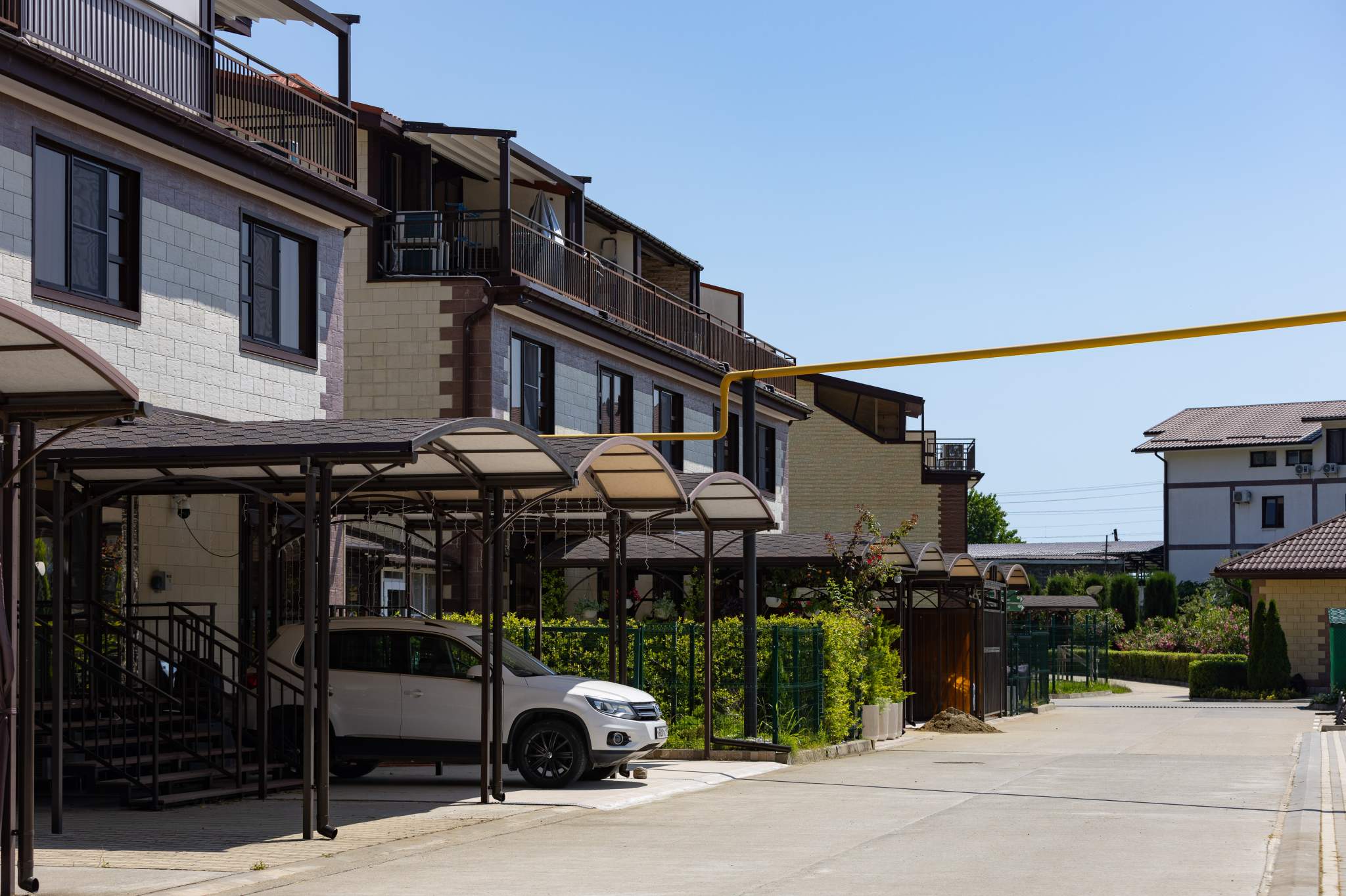 В таунхаусе площадью 88,6 м2 автономная система отопления и горячей воды с собственным газовым котлом. Центральные коммуникации. Парковочное место у каждого таунхауса! Отдельный вход в каждый таунхаус.