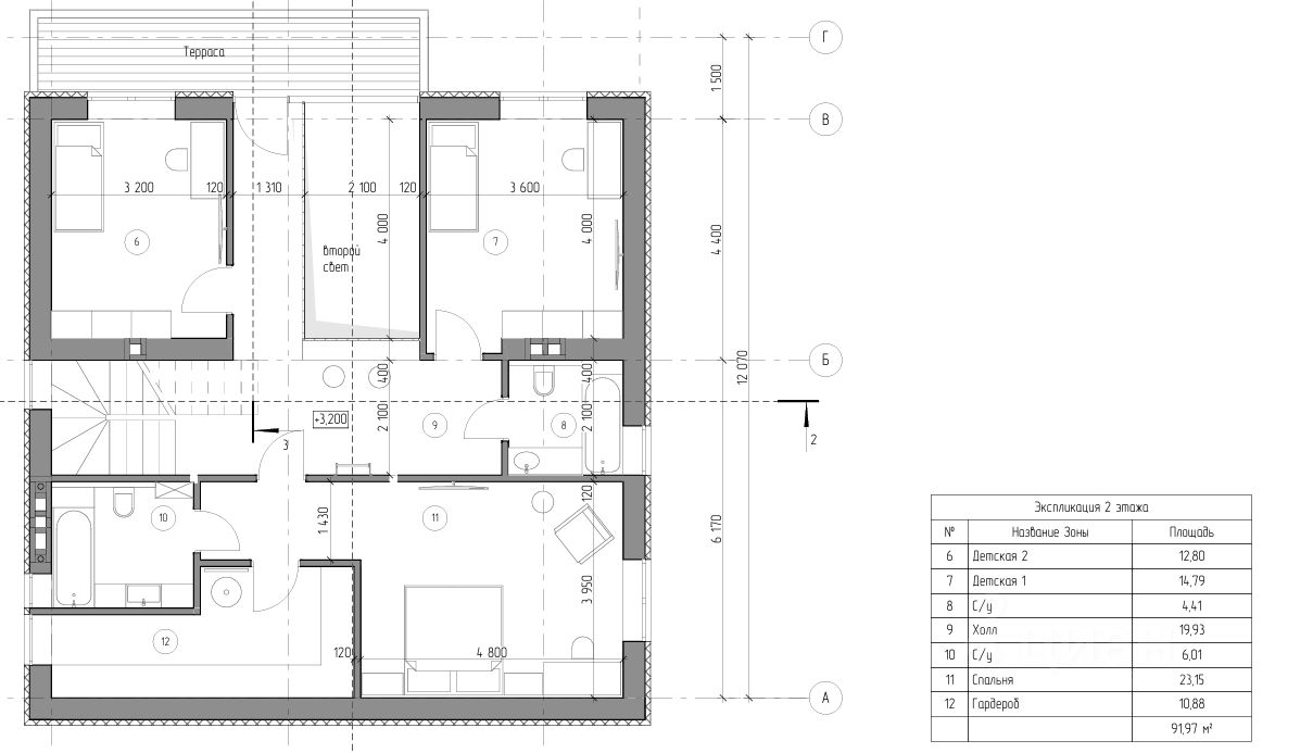- дом состоит из 2 жилых этажей;
