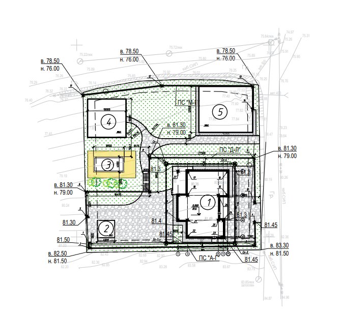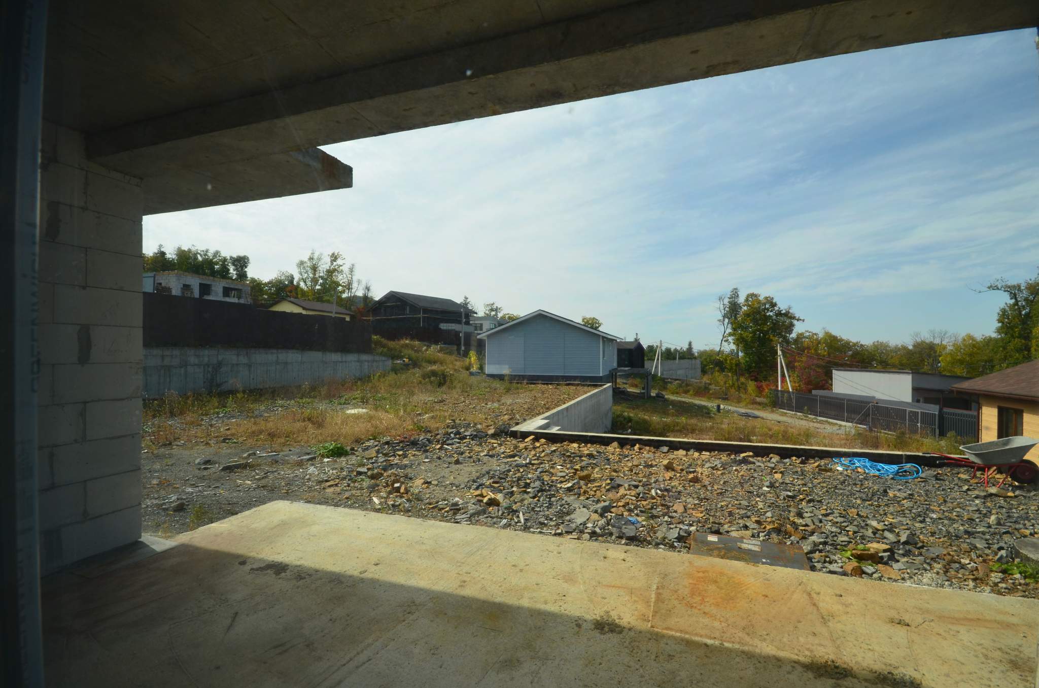 Территория мечты: Подготовленный участок с зоной для барбекю, подготовленной площадкой под гараж и укрепленной подпорной стеной.