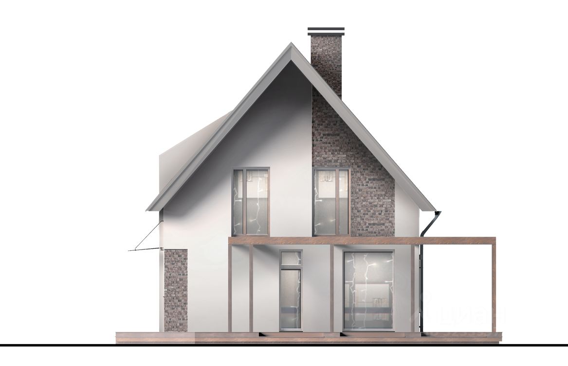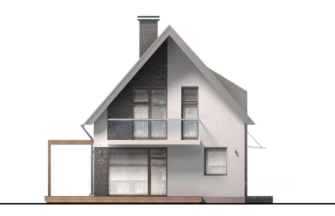 Пергола, соединяющая дом с природной средой, может быть декорирована или остеклена. Фасады отделаны декоративной штукатуркой с инкрустацией клинкерной. Галерея широких оконных проемов первого этажа, остекление лестничного пролета и ряды мансардных окон служат гарантией того, что всё пространство дома будет наполнено светом.