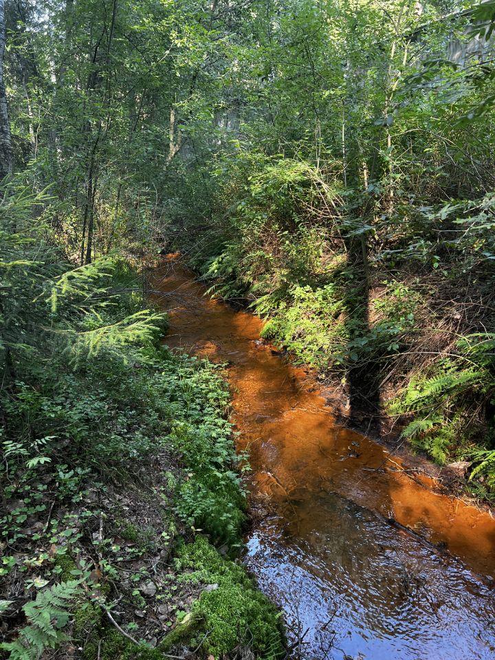 По краю участку протекает лесной ручей, можно сделать красивый пруд и круглый год в нем купаться.