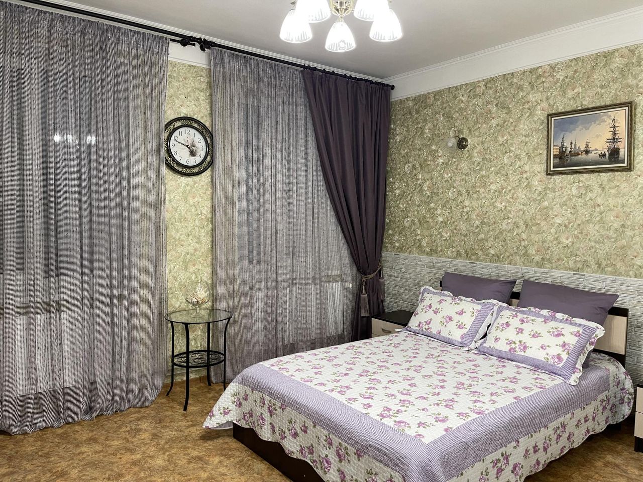 Мягкая мебель, двуспальная кровать, шкаф-купе, бытовая техника (холодильник, телевизор, электрочайник, кондиционер), душевая комната и санузел.