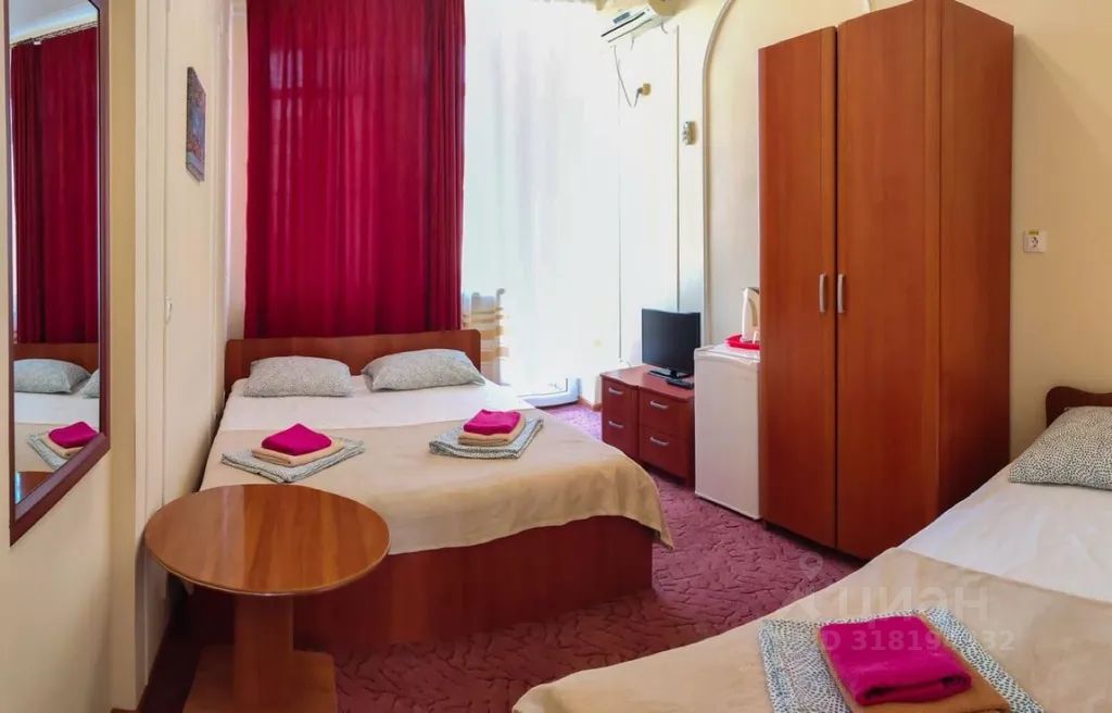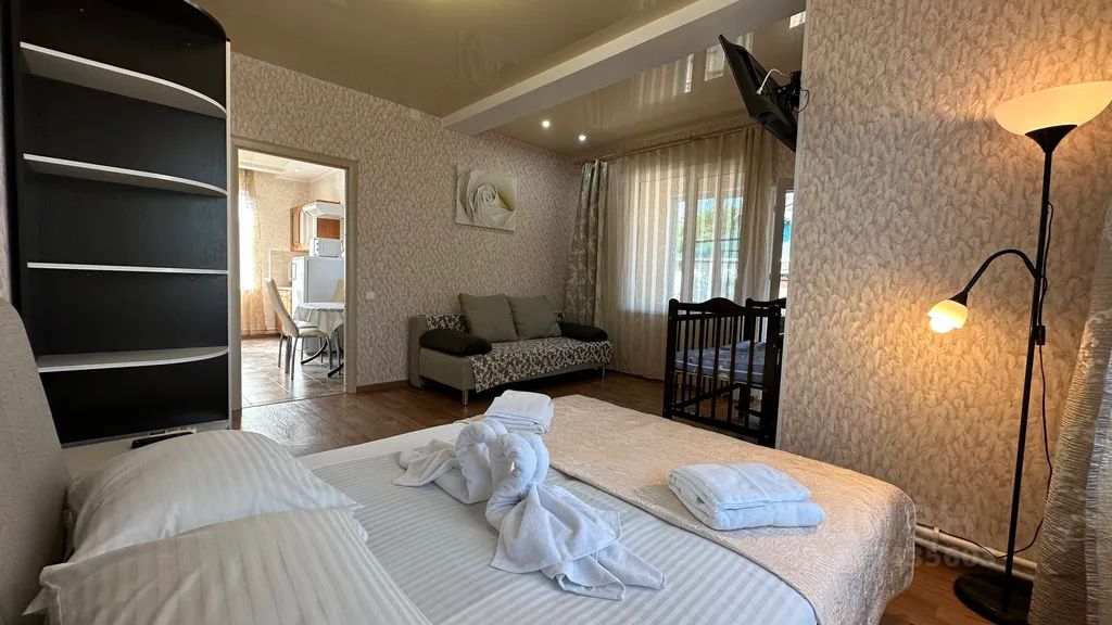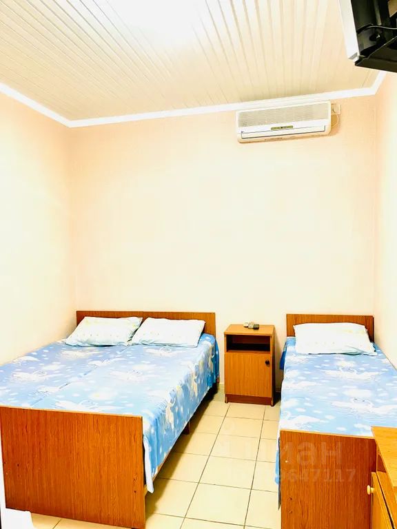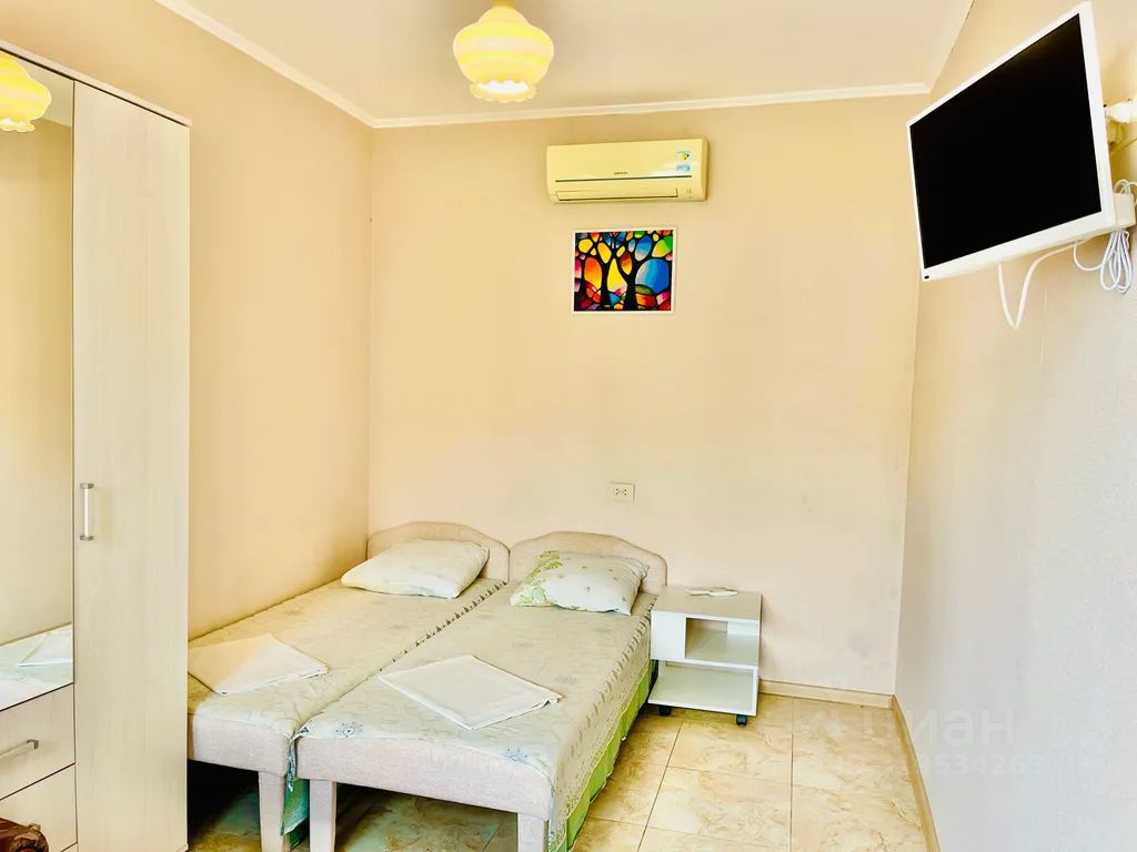 В номере: двуспальная и односпальная кровати, санузел с ванной (вода круглосуточно — котельная, скважина), балкон, цифровой тв- 20 каналов, холодильник, чайник, сплит-система. До моря 50 м....