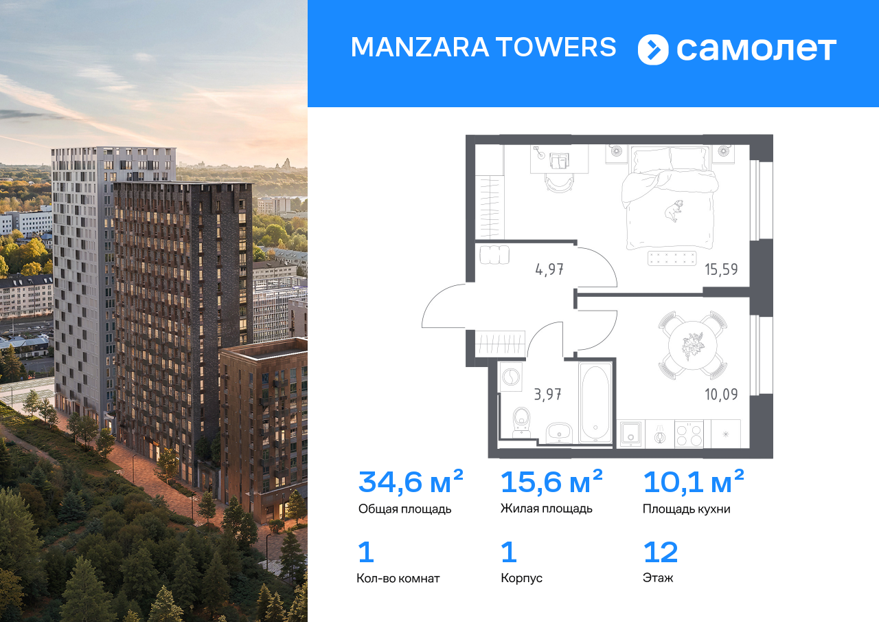 Строим кварталы для жизни с заботой о будущем. Предлагается 1-комнатная квартира комфорт-класса 34,62 кв.м в корпусе 1 на 12 этаже, в MANZARA TOWERS Квартира с предчистовой отделкой. Доступность...