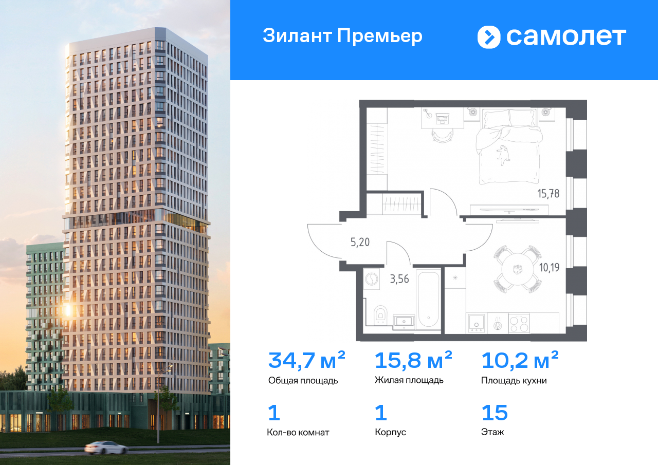 Строим кварталы для жизни с заботой о будущем. Предлагается 1-комнатная квартира комфорт-класса 34,73 кв.м в корпусе 1 на 15 этаже, в ЖК «Зилант Премьер» Квартира с предчистовой отделкой....