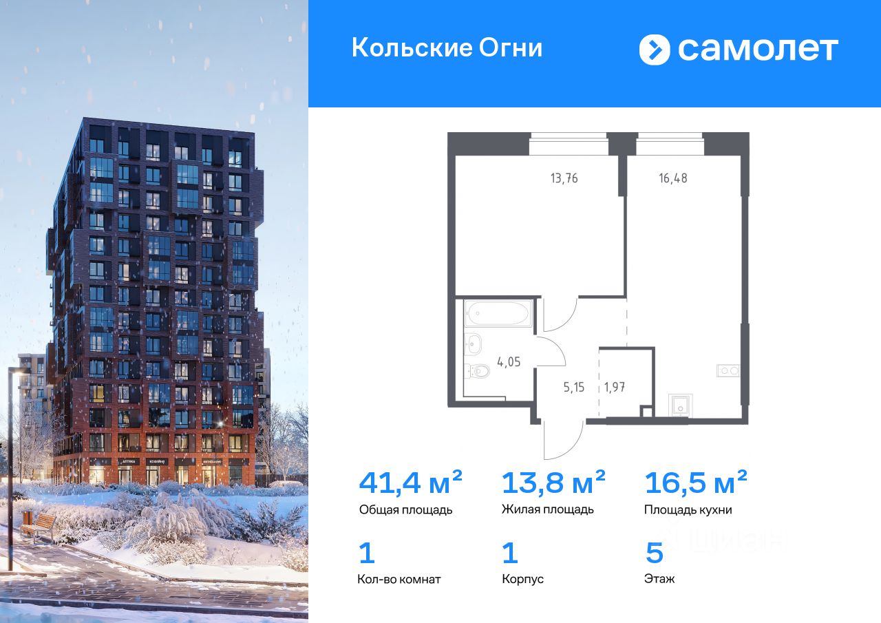 Строим кварталы для жизни с заботой о будущем. Предлагается 1-комнатная квартира комфорт-класса 41,41 кв.м в корпусе 1 на 4 этаже, в ЖК "Кольские Огни" Квартира без отделки. Доступность опции...