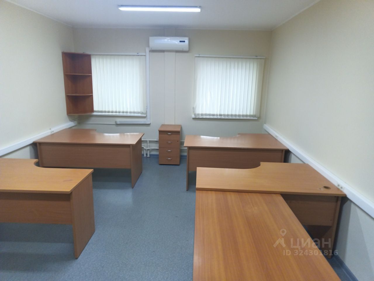 В офисе остается все что на фото. (5 столов, 2 шкафа, тумбочка, полка-уголок).