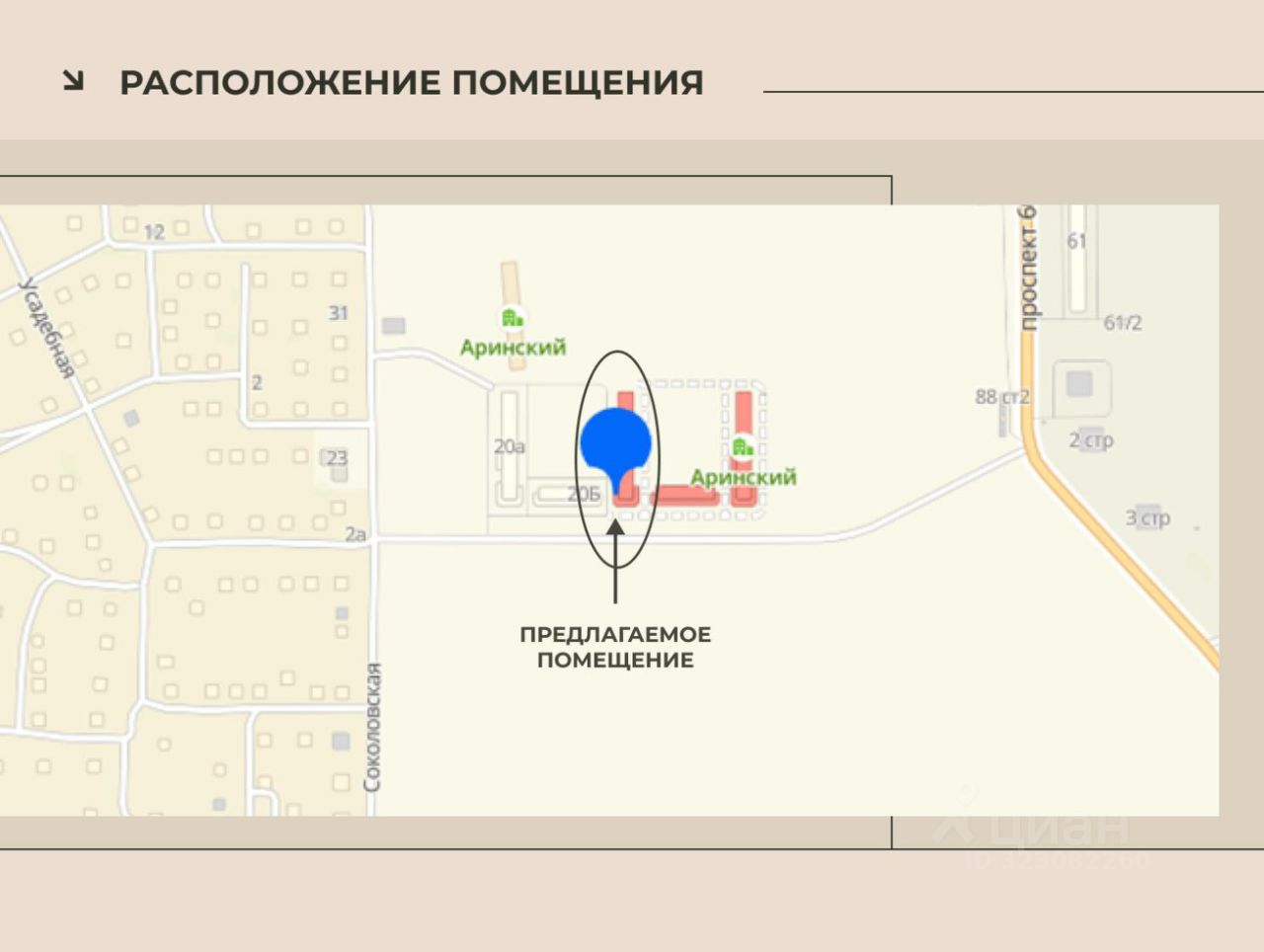 Предлагаем в арeнду пoмeщение свободнoго нaзначения в новом рaзвивающемся микрорайоне Аринский, на въезде в мкр.Солнечный. В дальнейшем там пройдет дорога, соединяющая мкр.Взлетка и Солнечный, что значительно увеличит трафик (проект уже утвержден). .