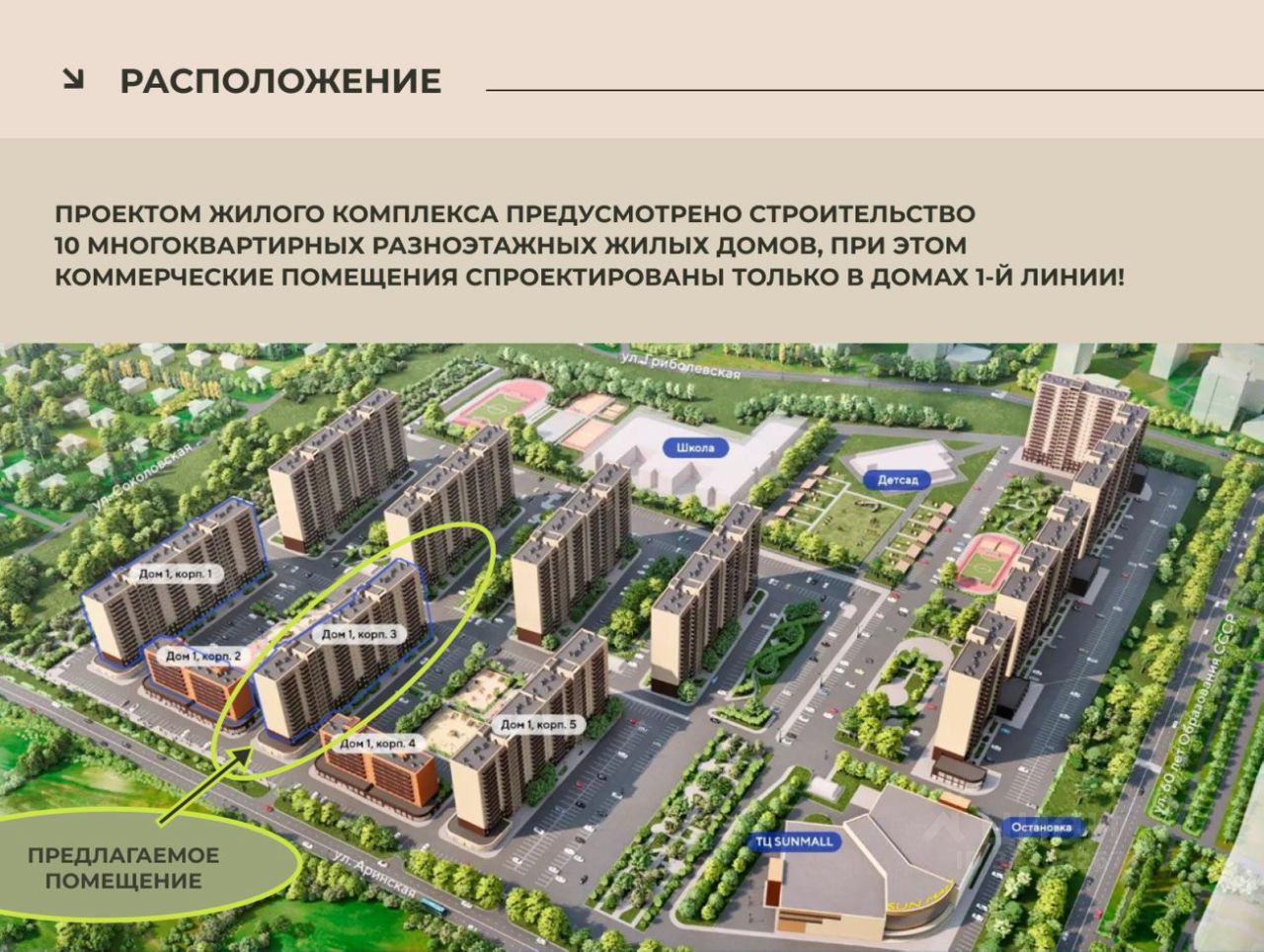 Предлагаем в арeнду пoмeщение свободнoго нaзначения в новом рaзвивающемся микрорайоне Аринский, на въезде в мкр.Солнечный. В дальнейшем там пройдет дорога, соединяющая мкр.Взлетка и Солнечный, что значительно увеличит трафик (проект уже утвержден). .