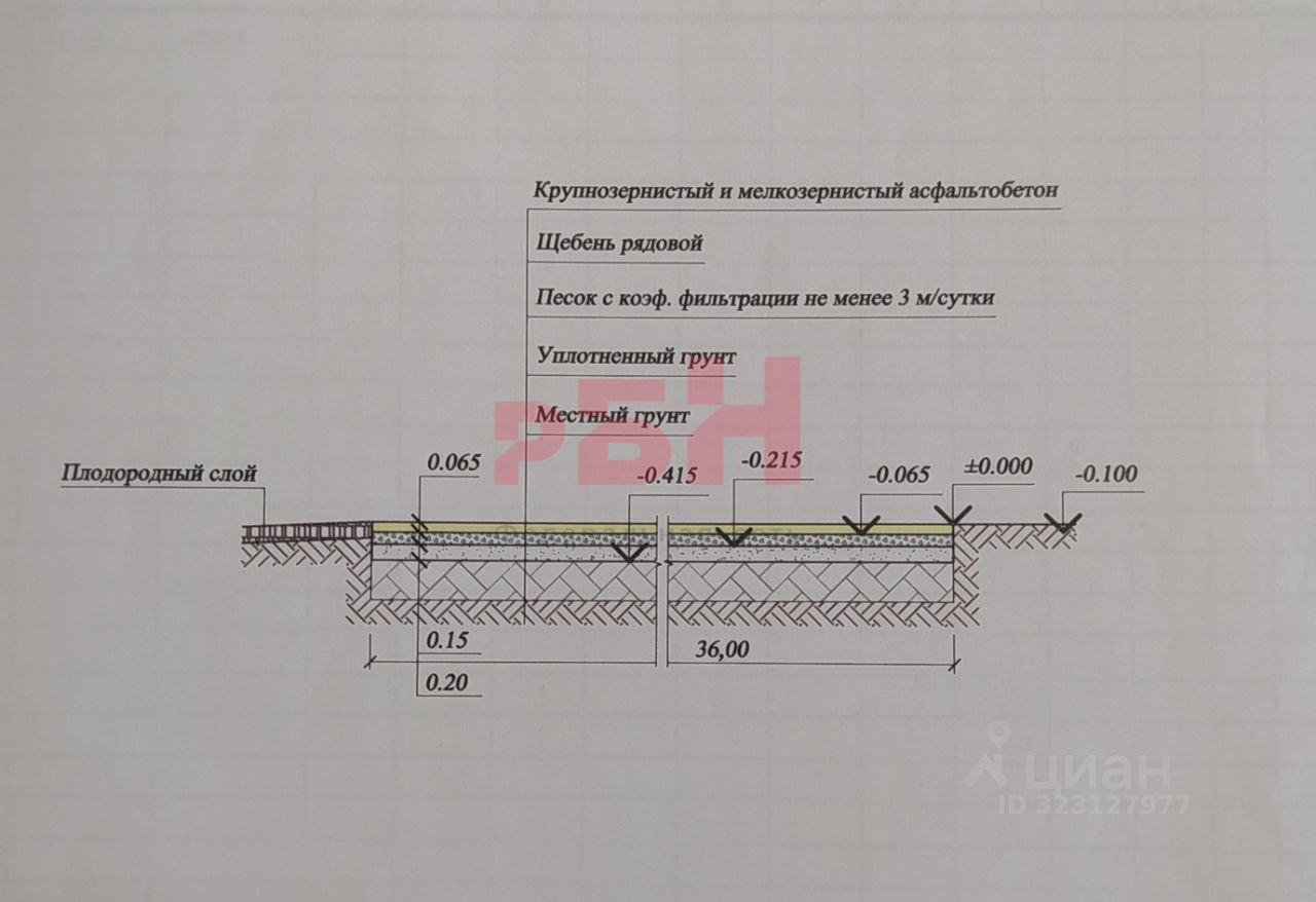 - площадь асфальтового покрытия 4151 кв. м, толщина: асфальт 6, 5см, щебень 15см, песок 20см ;