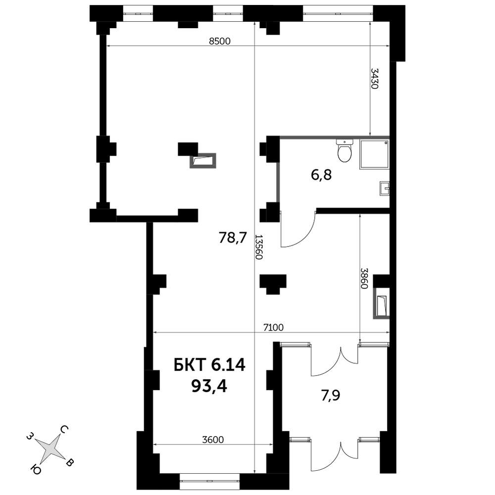 | Площадь общая | 93.8 |