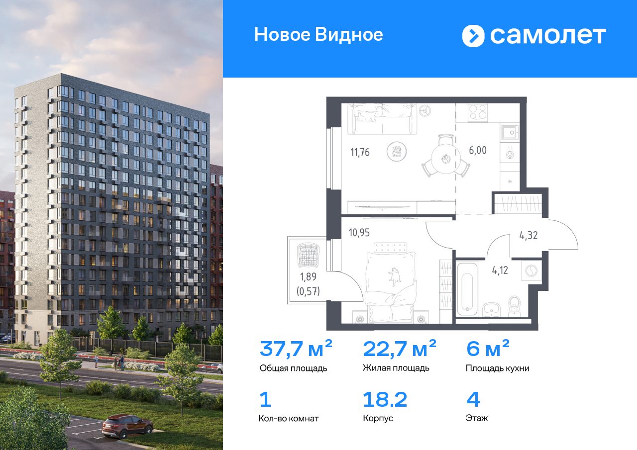 Строим кварталы для жизни с заботой о будущем. Предлагается 1-комнатная квартира комфорт-класса 37,72 кв.м в корпусе 18.2 на 4 этаже, в ЖК «Новое Видное»