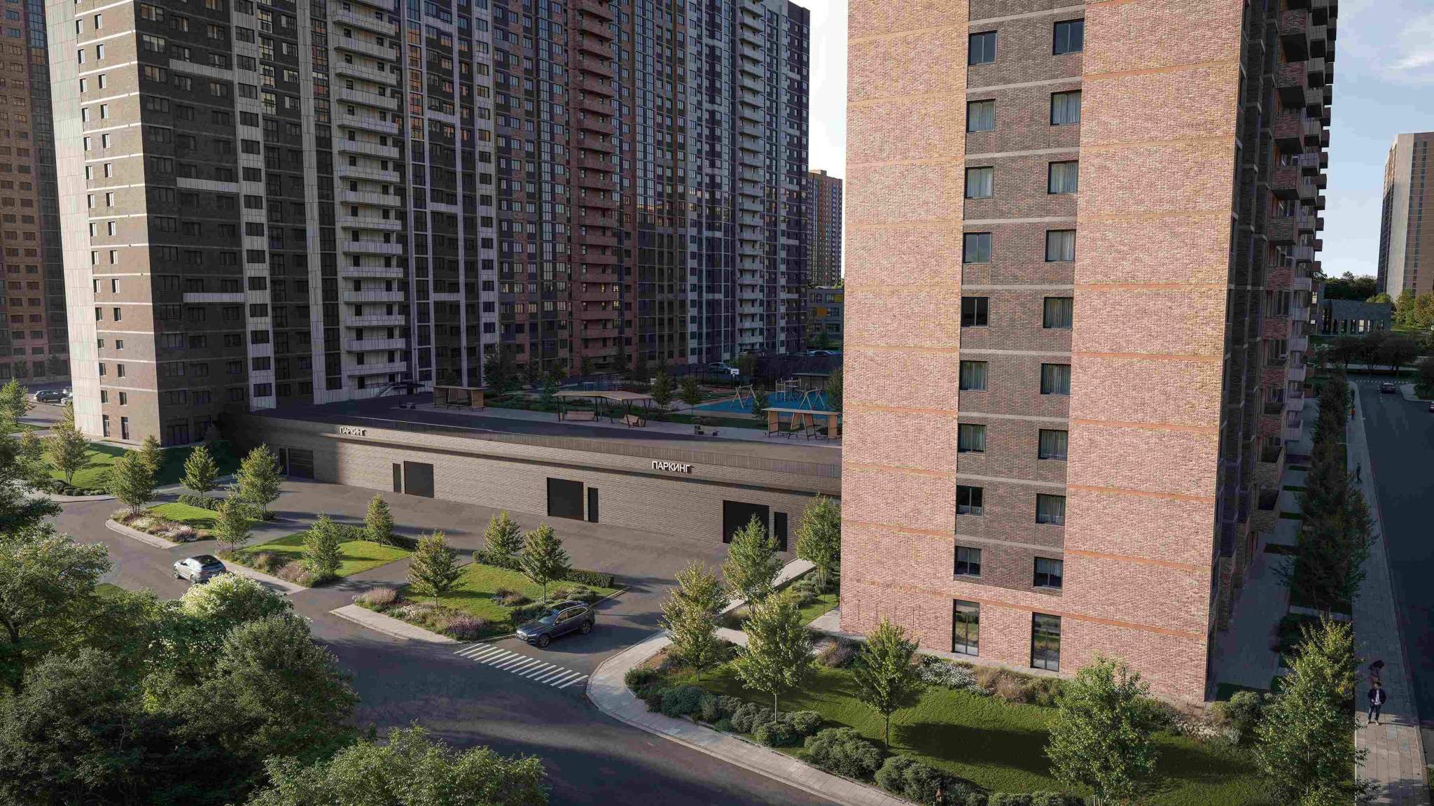 Подземная парковка, парковка охраняется. Инфраструктура: детские площадки, спортивные площадки, места для отдыха, коммерческие объекты.